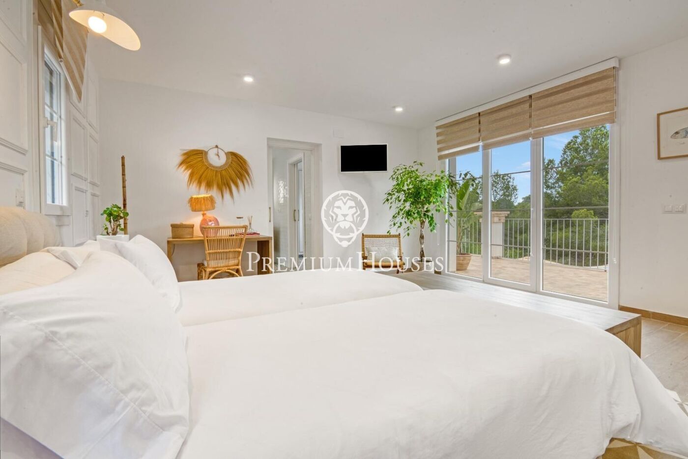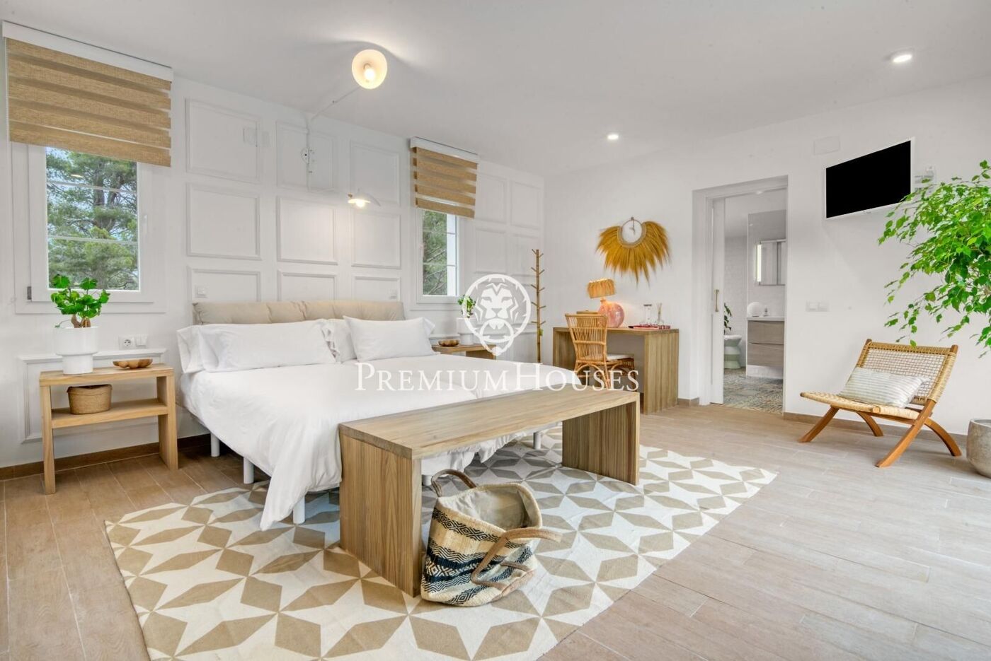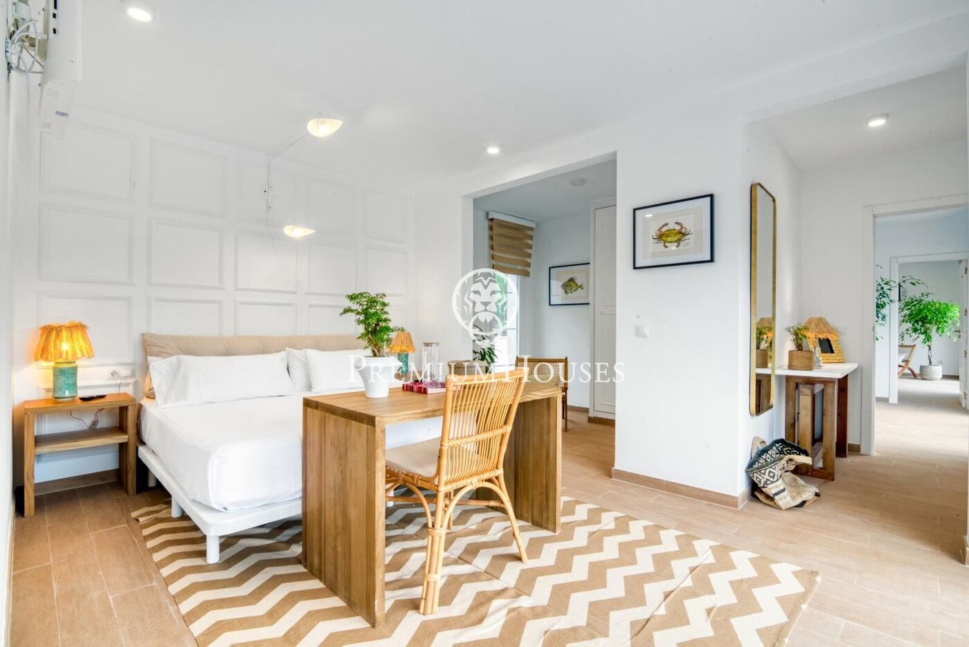 La primera planta incorpora cuatro habitaciones adicionales, todas en suite, con baños privados y salida a la terraza, configurando una amplia zona de noche.