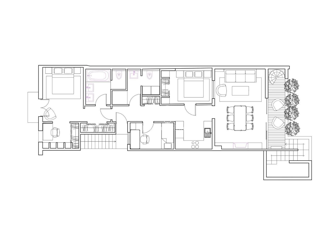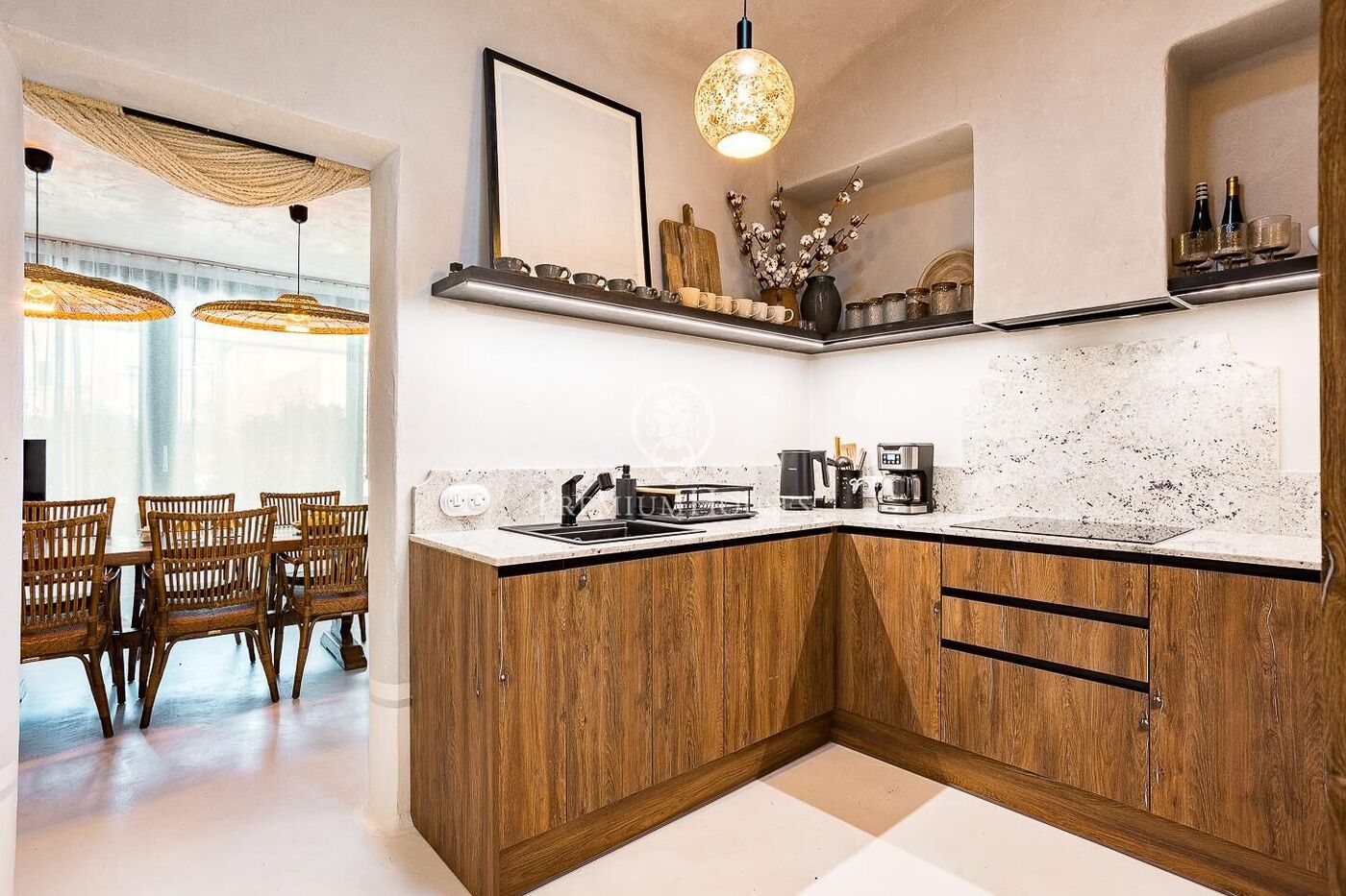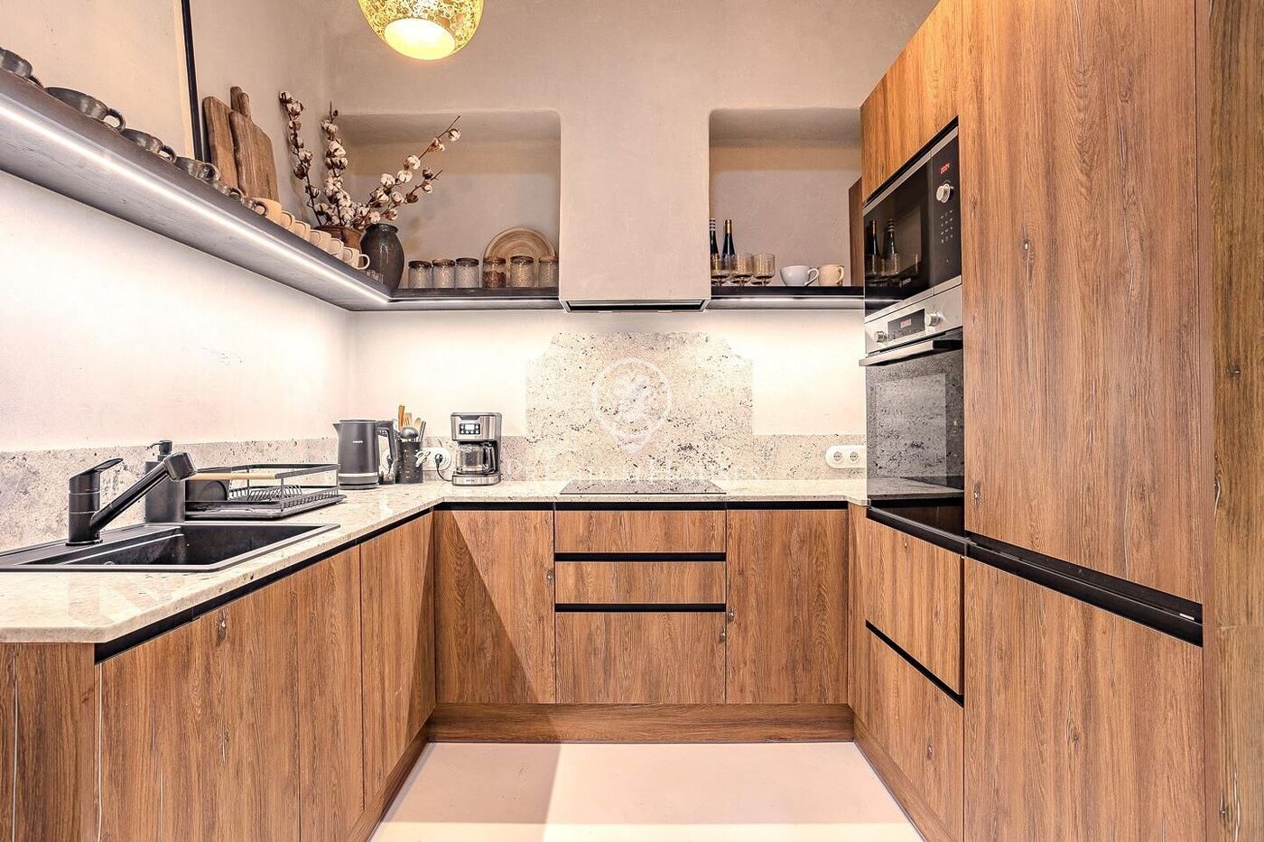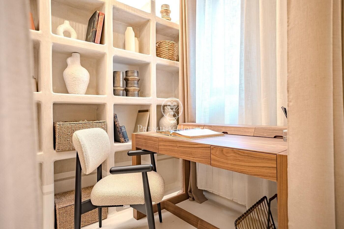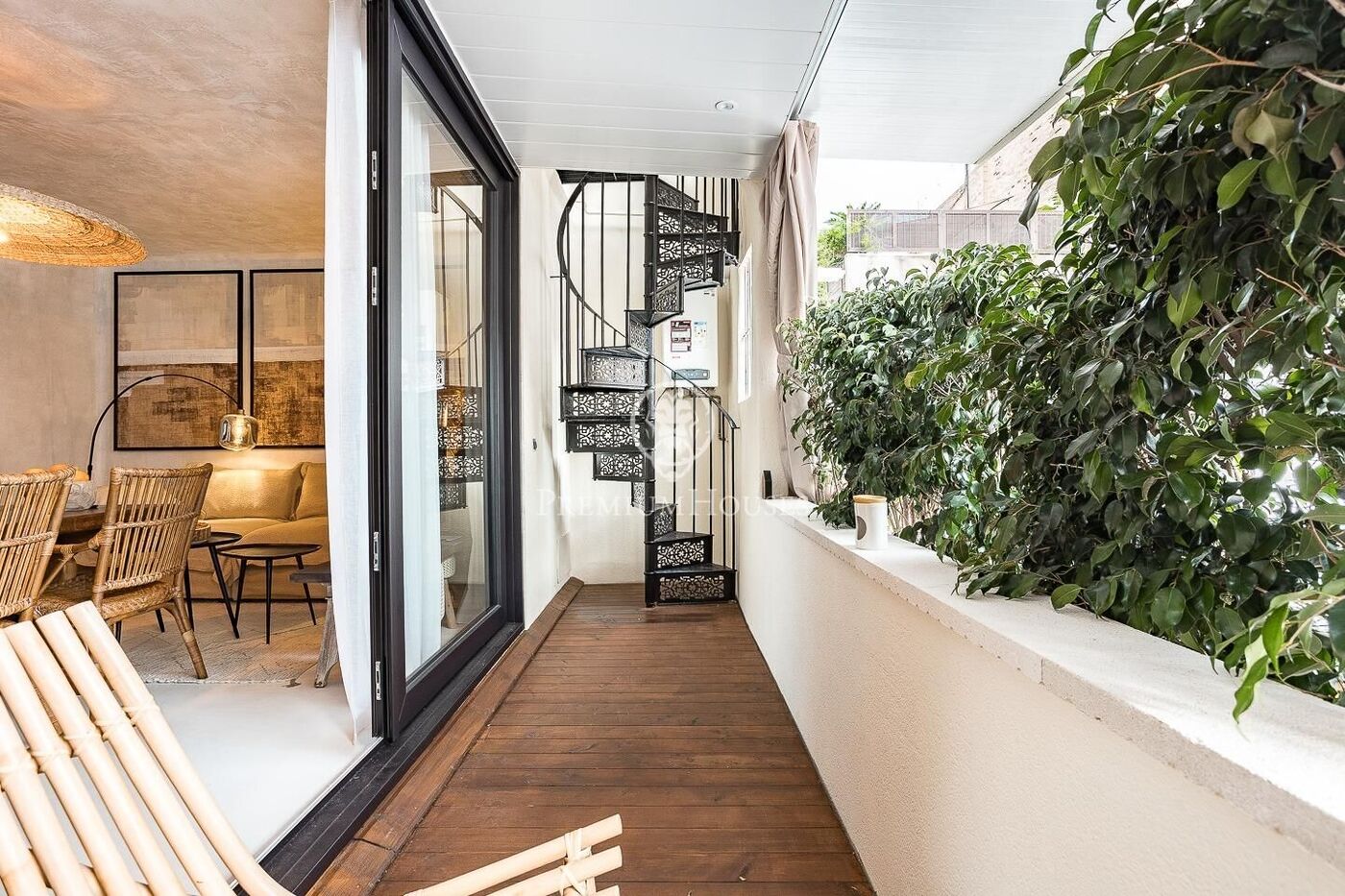 La reforma integral, realizada por un interiorista de prestigio en el mundo de restauración, destaca por la calidad de los materiales, las líneas suaves y una iluminación cuidadosamente diseñada para crear ambientes cálidos y equilibrados. El piso se entrega totalmente amueblado, decorado con todos los utensilios de cocina, menaje y jardinería, listo para entrar a vivir.