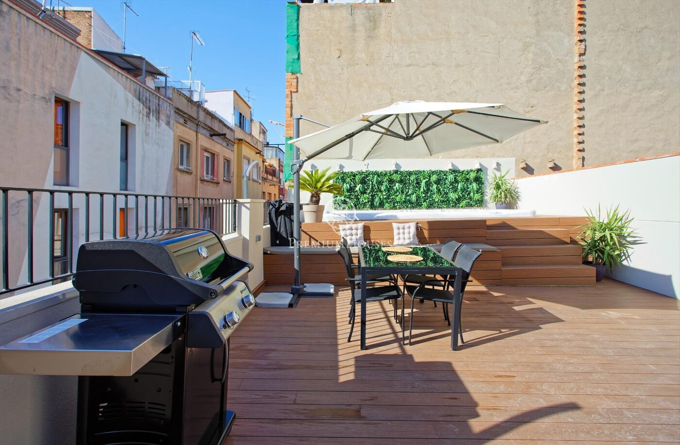 Desde la escalera comunitaria se accede a la azotea, una espectacular zona común en la azotea del edificio. Este espacio cuenta con piscina con hidromasaje, cromoterapia y sistema de nado contracorriente, además de ducha exterior, aseo completo y zona de barbacoa a gas. La terraza incluye también una zona privada de uso exclusivo de la vivienda de la primera planta, de aproximadamente 17 m².