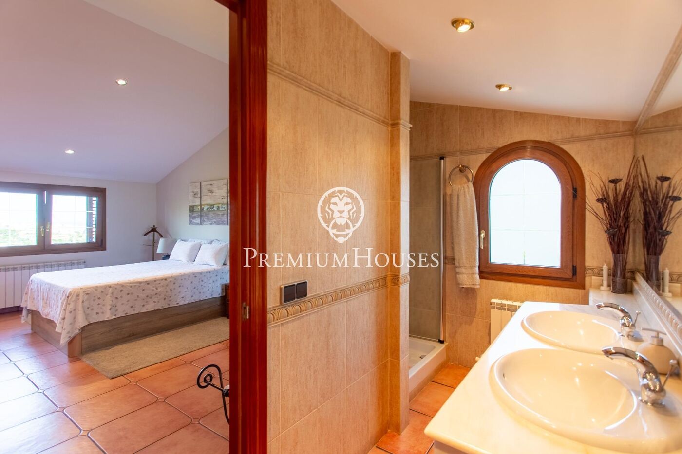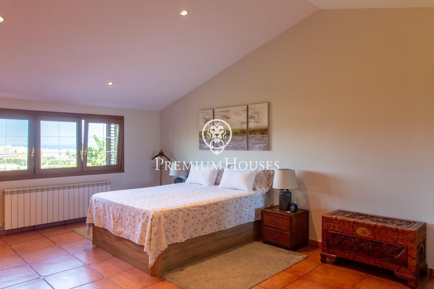 La planta superior es distribueix en tres habitacions. Una d'elles és en suite, amb bany privat i vistes espectaculars, mentre que les altres dues són dobles i comparteixen un bany. Un ampli distribuïdor obert a l'escala connecta totes les estades, creant una sensació d'amplitud i fluïdesa en l'espai.
