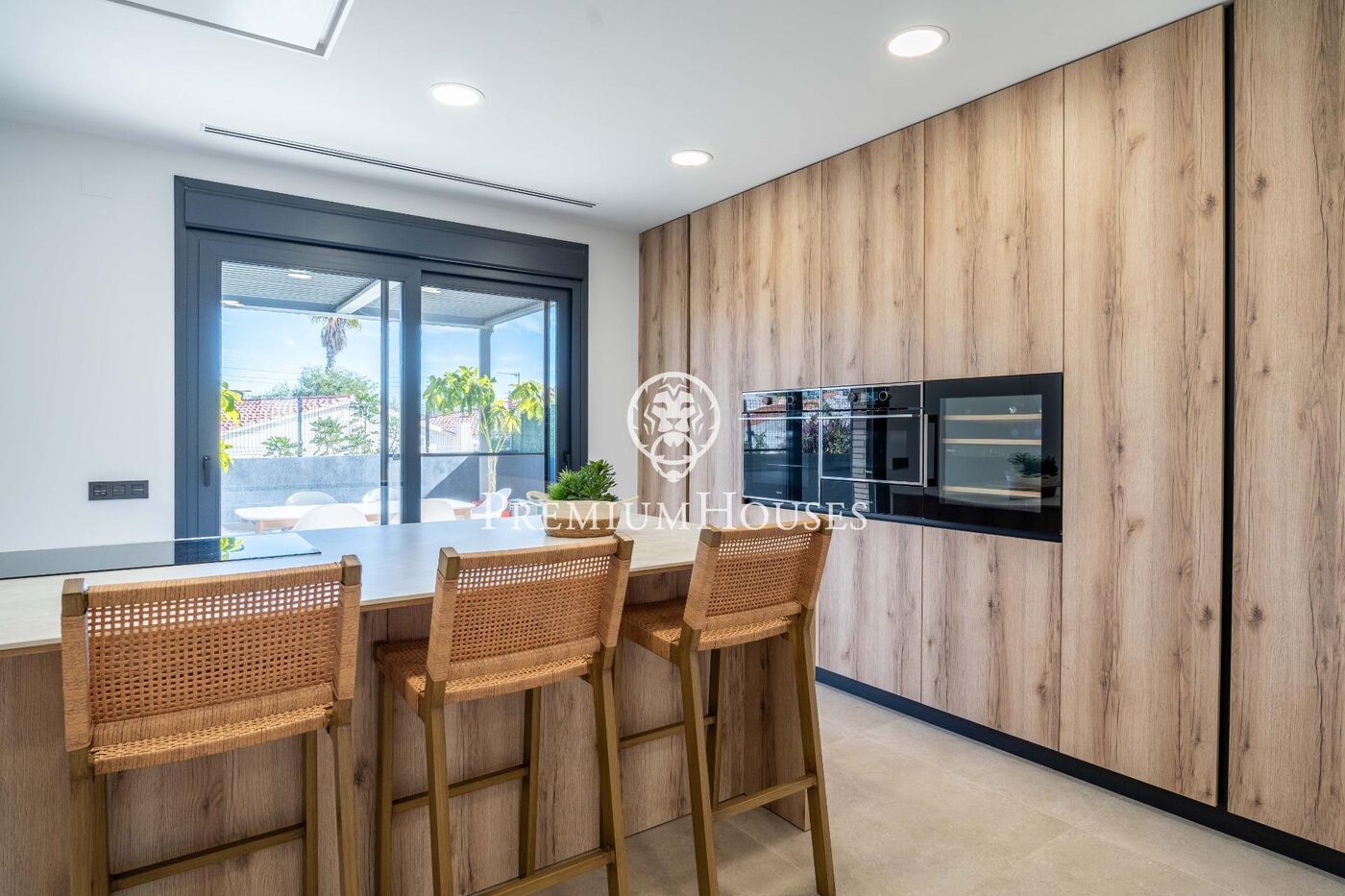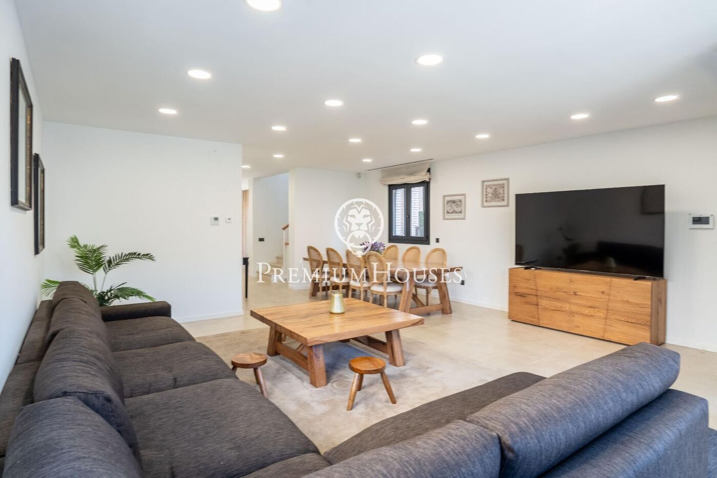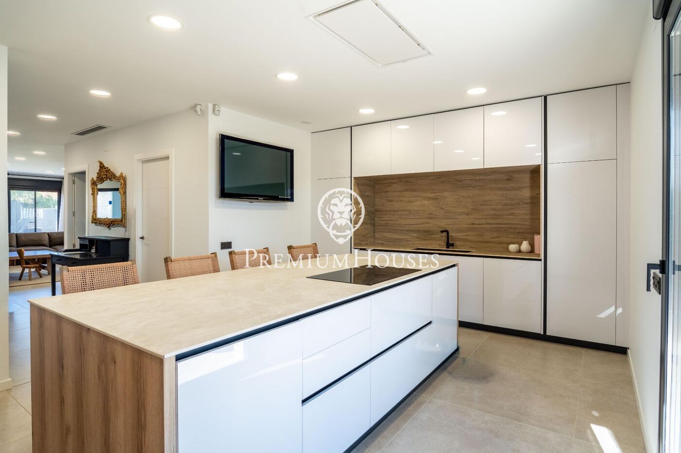 La planta baixa es troba la zona de dia, composta per saló menjador i cuina oberta amb illa. Tots dos espais tenen accés directe al jardí. El saló es connecta amb el jardí davanter, on trobem la piscina, mentre que la cuina s'obre al jardí posterior. Aquesta planta també inclou un bany complet i una pràctica bugaderia.