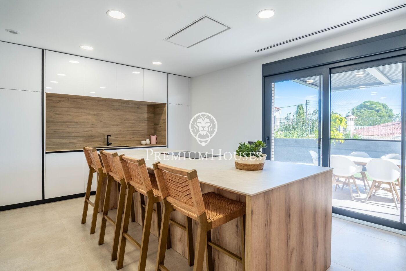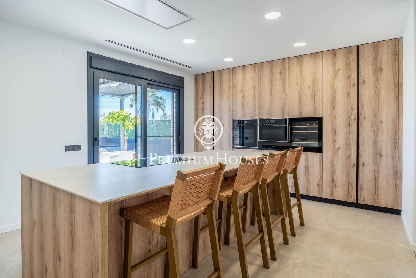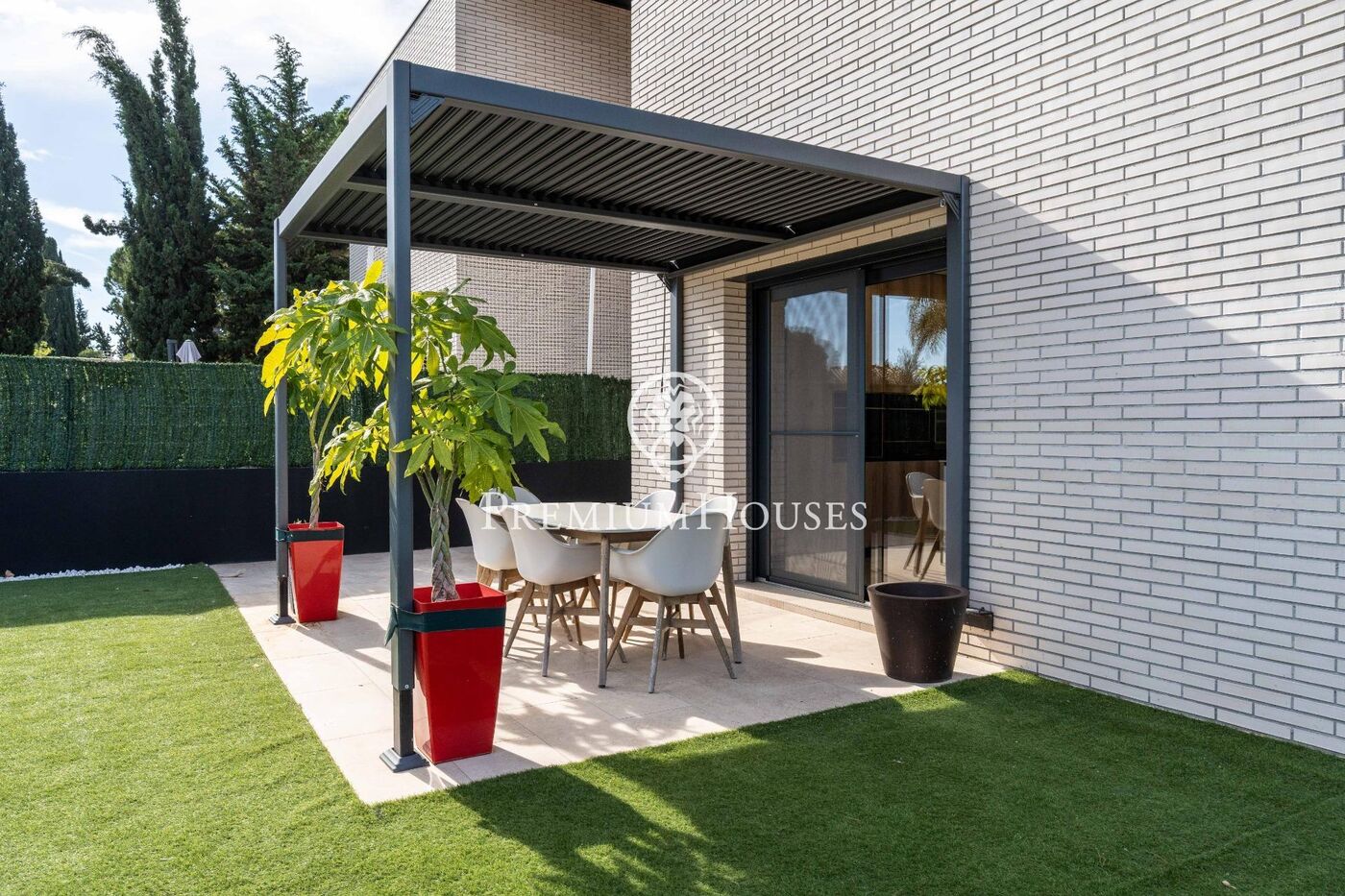 La planta baixa es troba la zona de dia, composta per saló menjador i cuina oberta amb illa. Tots dos espais tenen accés directe al jardí. El saló es connecta amb el jardí davanter, on trobem la piscina, mentre que la cuina s'obre al jardí posterior. Aquesta planta també inclou un bany complet i una pràctica bugaderia.