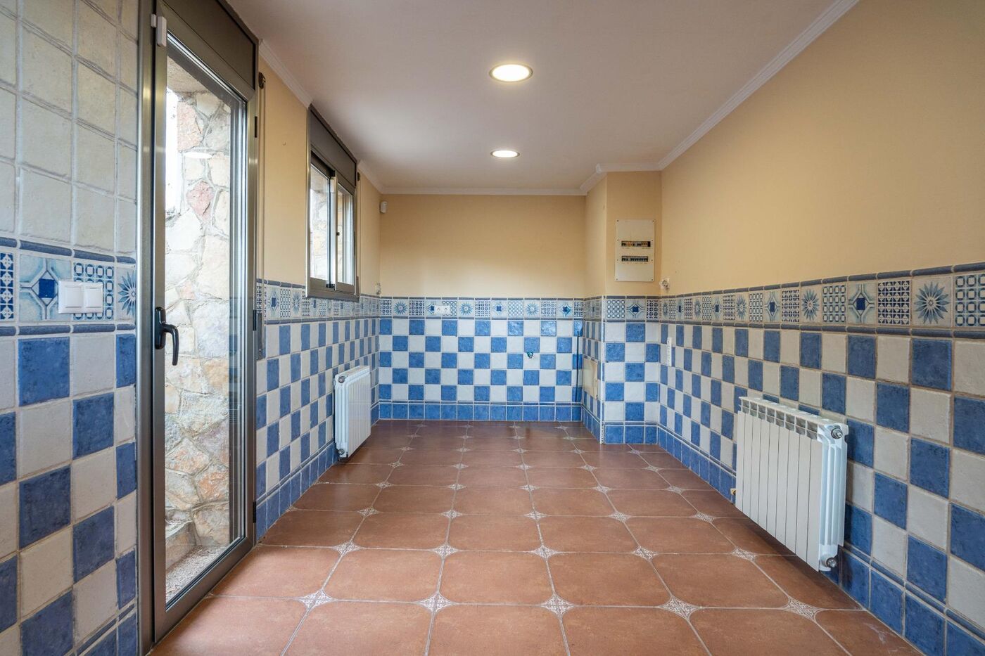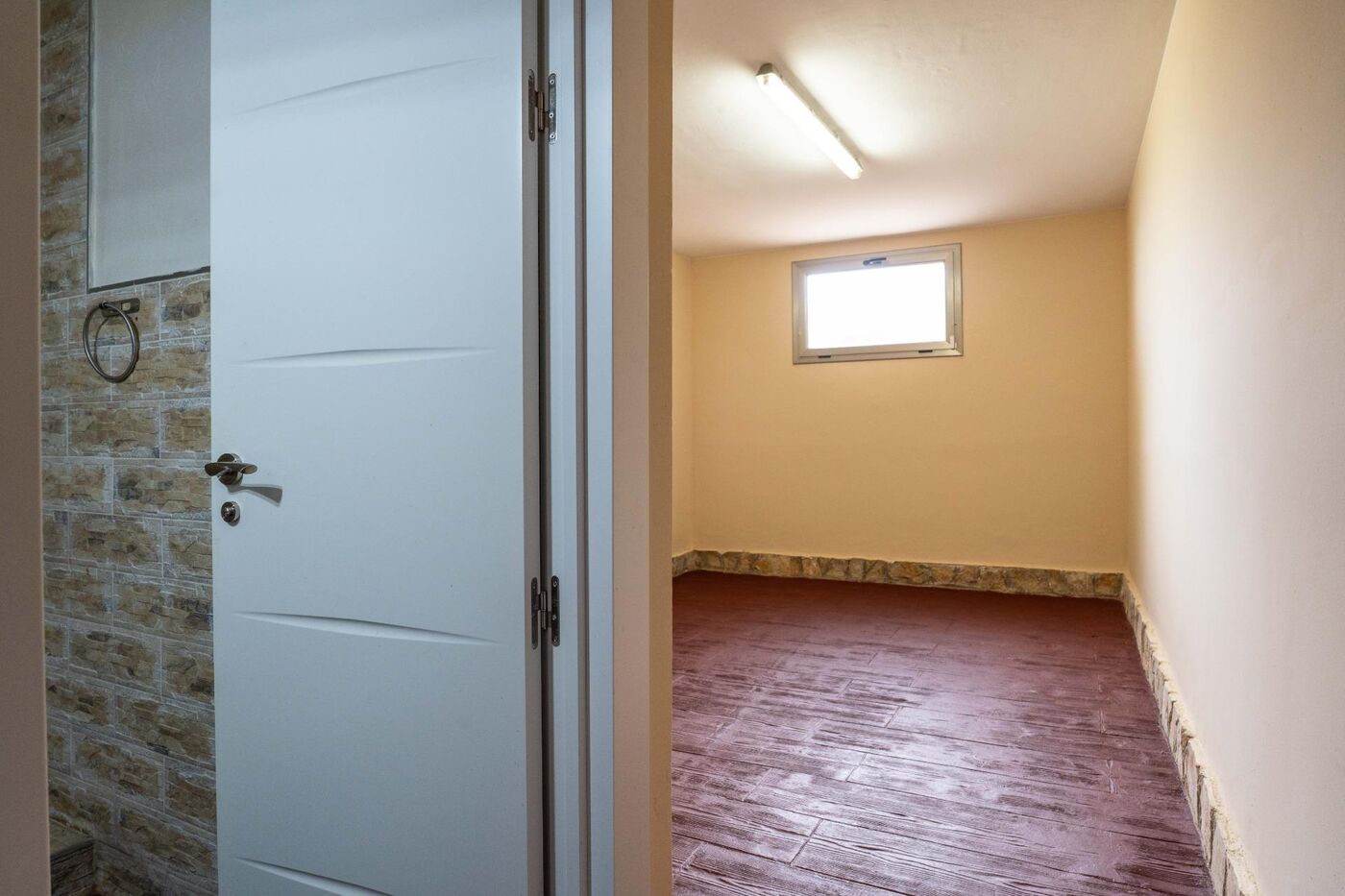 La planta principal disposa d'un ampli rebedor, un saló-menjador amb accés a la terrassa, cuina independent amb sortida al pati posterior, una habitació doble i un bany complet.