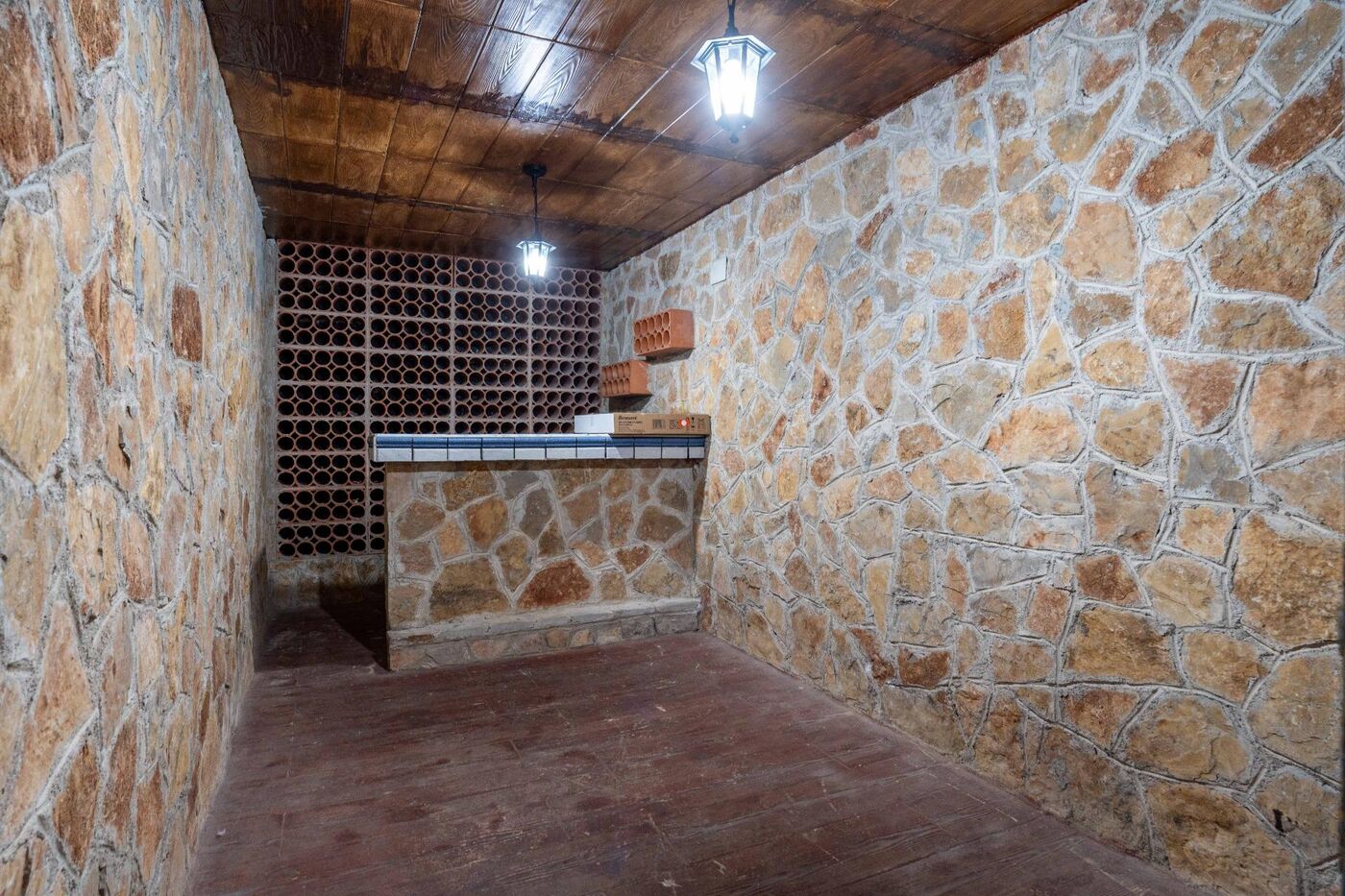 En la planta soterrani trobem una completa zona d'oci amb cuina d'estiu i barbacoa d'obra, amb sortida directa a la piscina, una sala polivalent, un bany complet, celler i garatge amb capacitat per a dos vehicles.