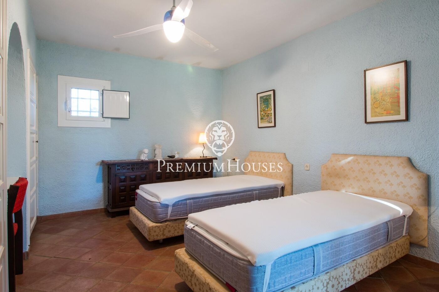 Planta baixa: Ampli hall d'entrada, 2 salons coberts amb xemeneia, 2 menjadors (1 menjador d'estiu i un altre d'hivern), cuina totalment equipada, 3 dormitoris, 2 banys, 1 lavabo per a convidats, diverses terrasses, 2 garatges, bugaderia.