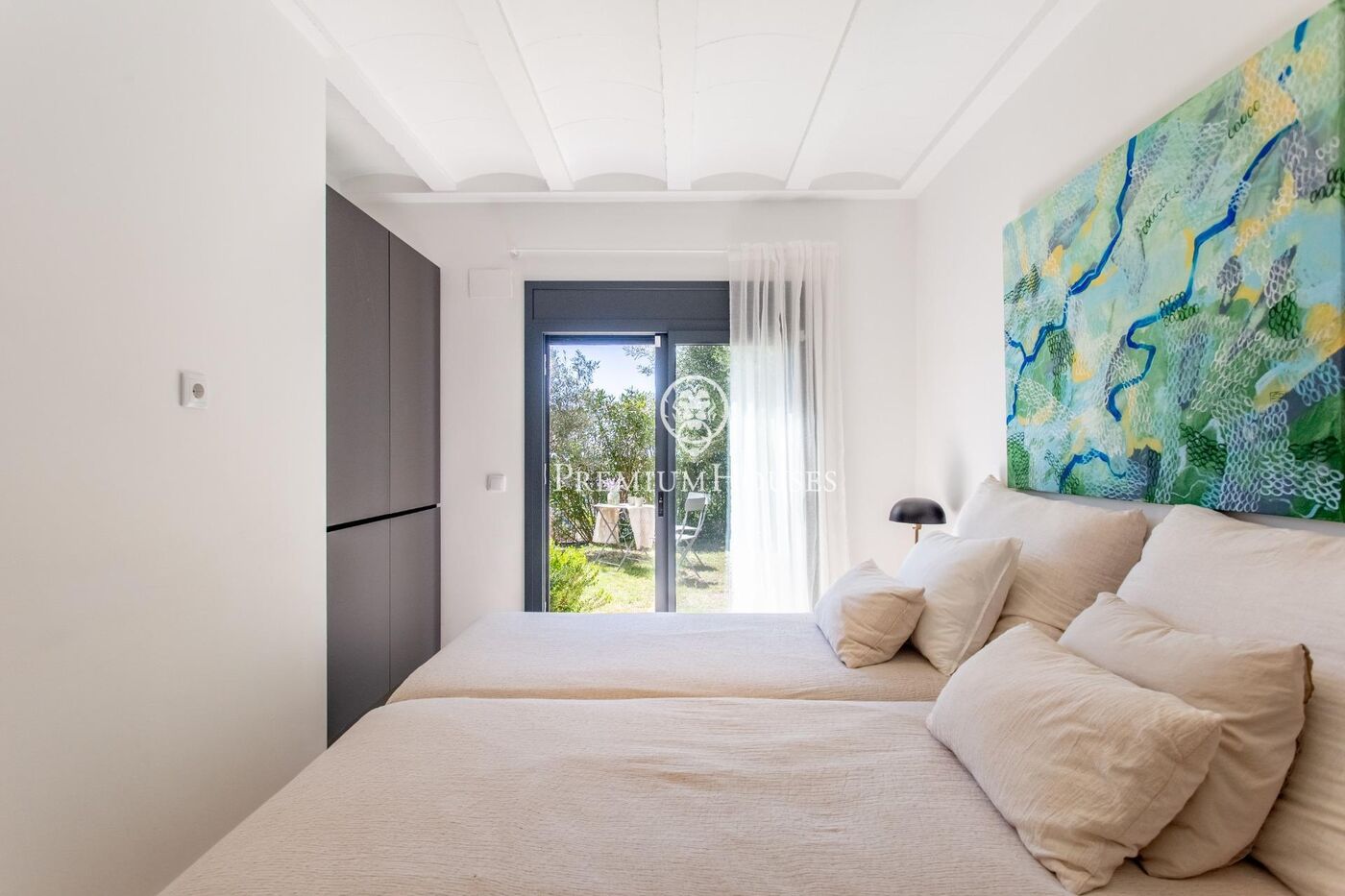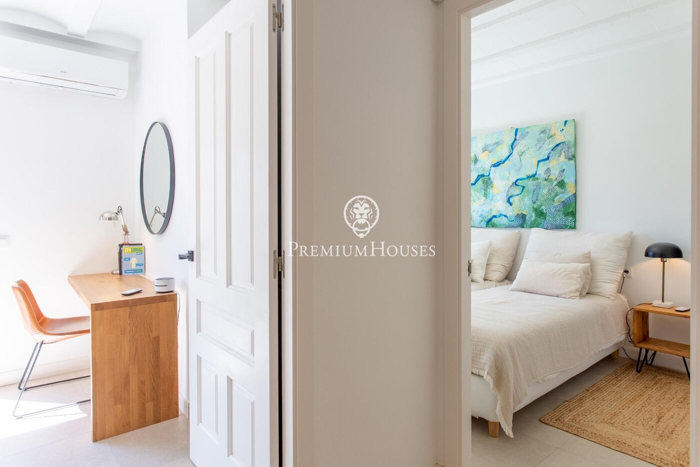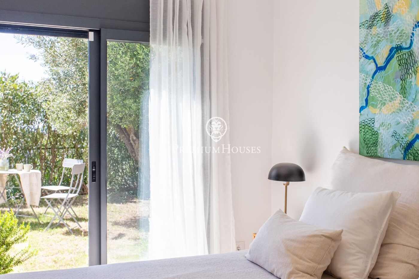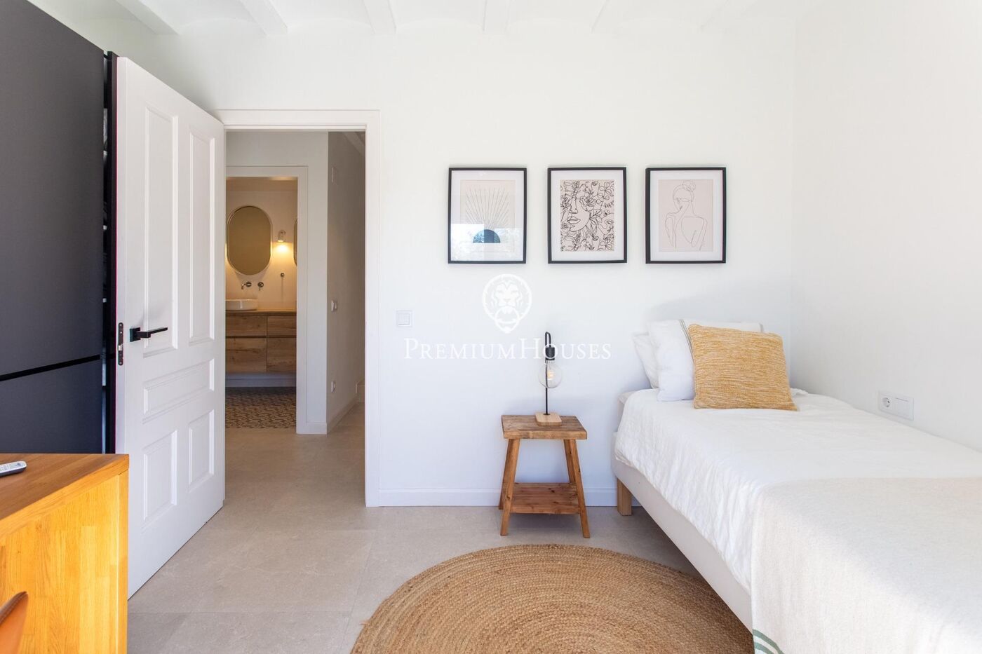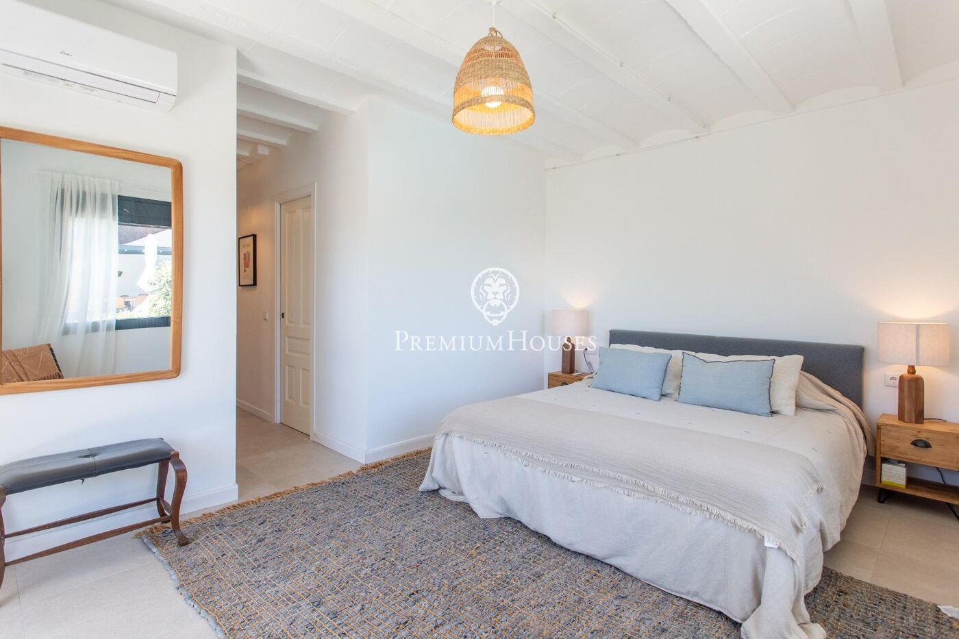 L'interior està dissenyat per al màxim confort i funcionalitat, incloent-hi una cuina americana totalment equipada. Amb acabats d'alta qualitat amb sistema de calefacció per sòl radiant que funciona amb una bomba de calor de font d'aire (aerotèrmia) respectuosa amb el medi ambient i amb ajuda de panells solars, aire condicionat en totes les estades, sistema de recollida d'aigua de pluja per al reg del jardí d'uns 400m2 amb oliveres, plantes mediterrànies i gespa natural. Amb piscina salada de 7,5m per 3,5m.