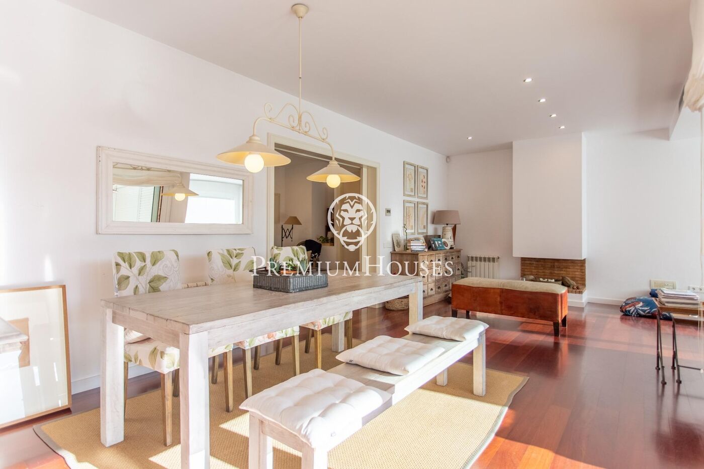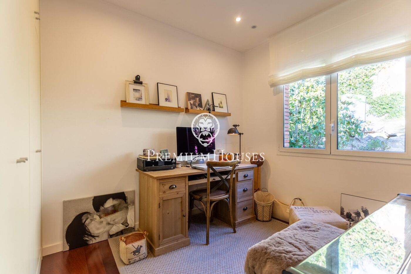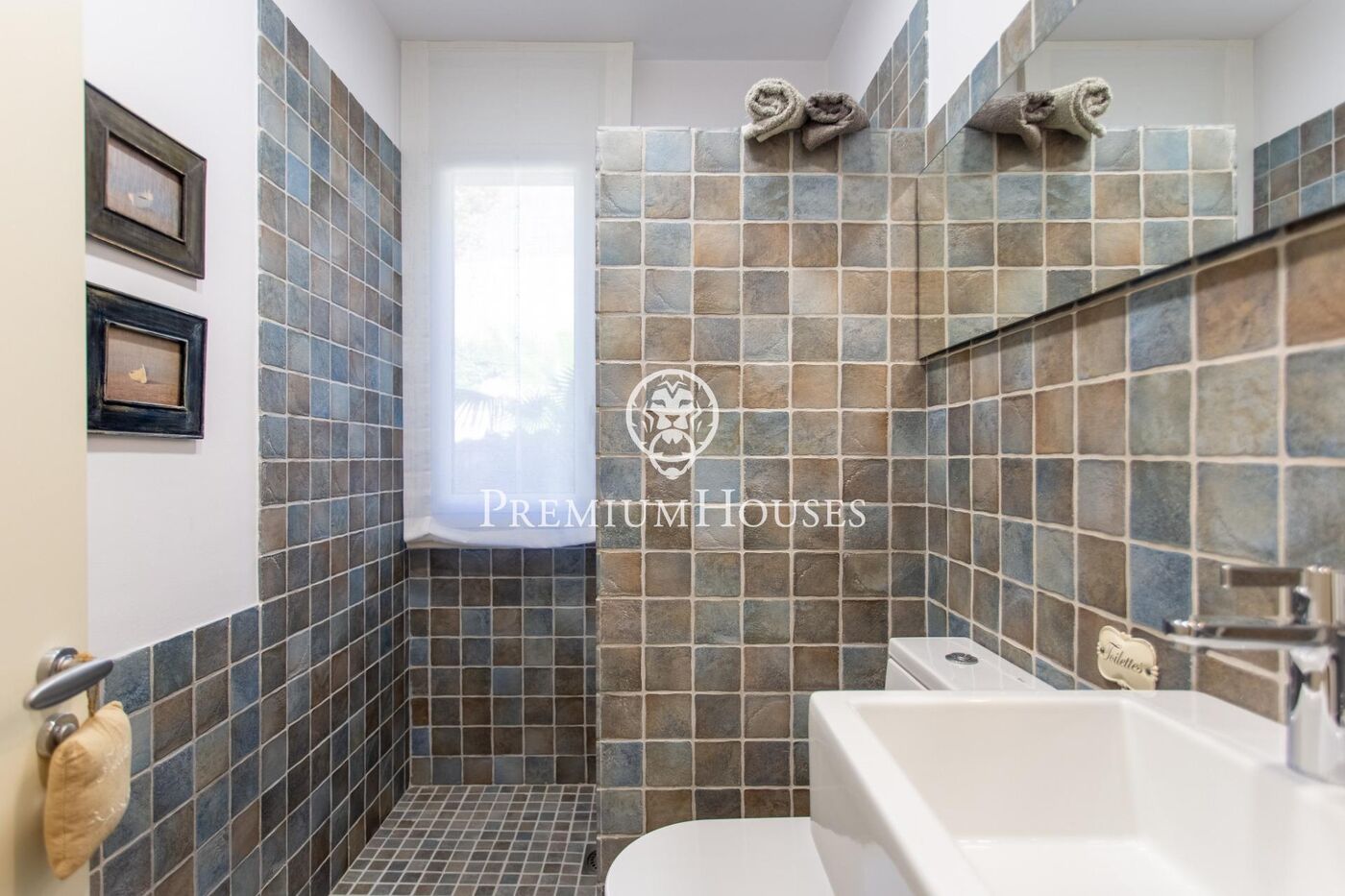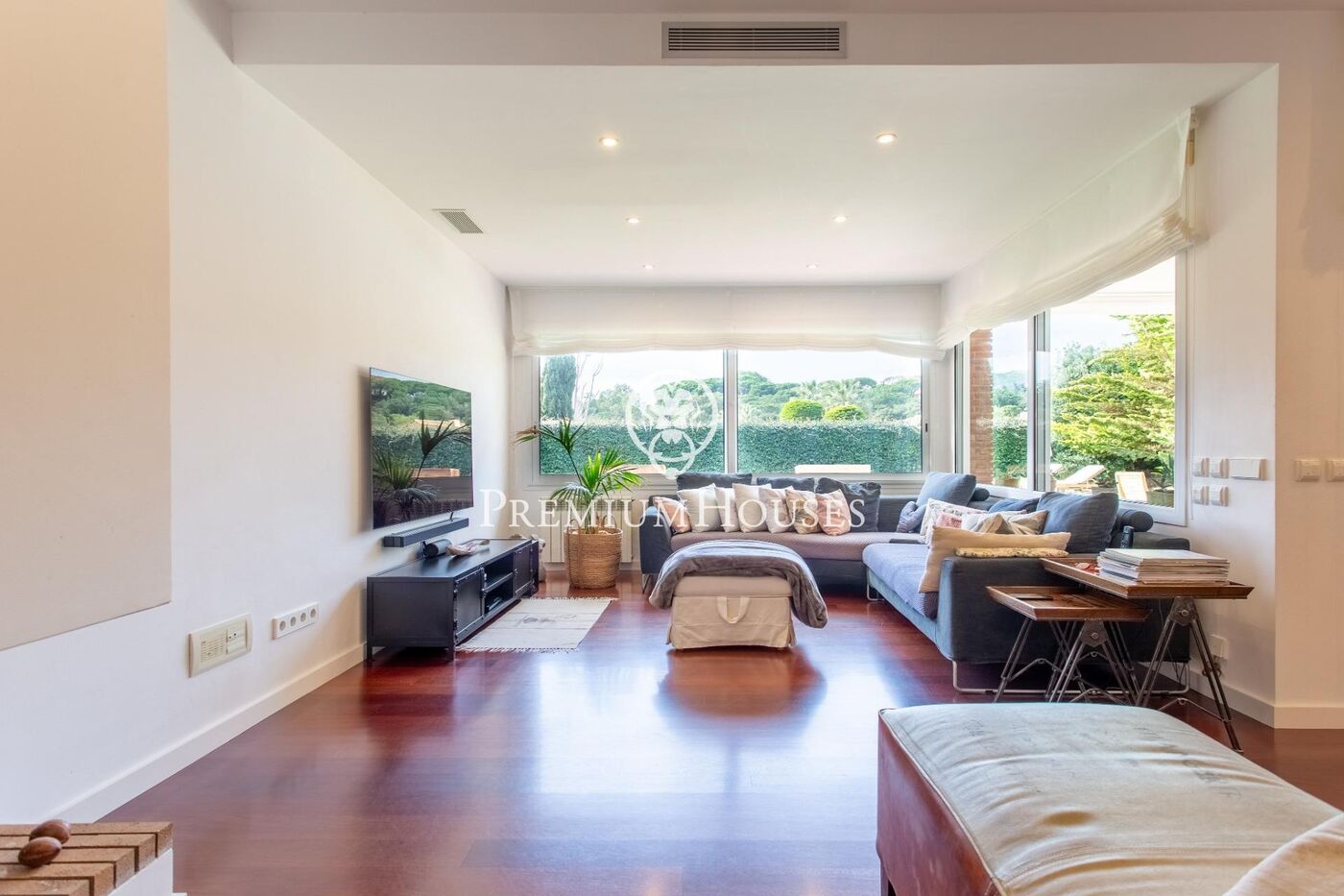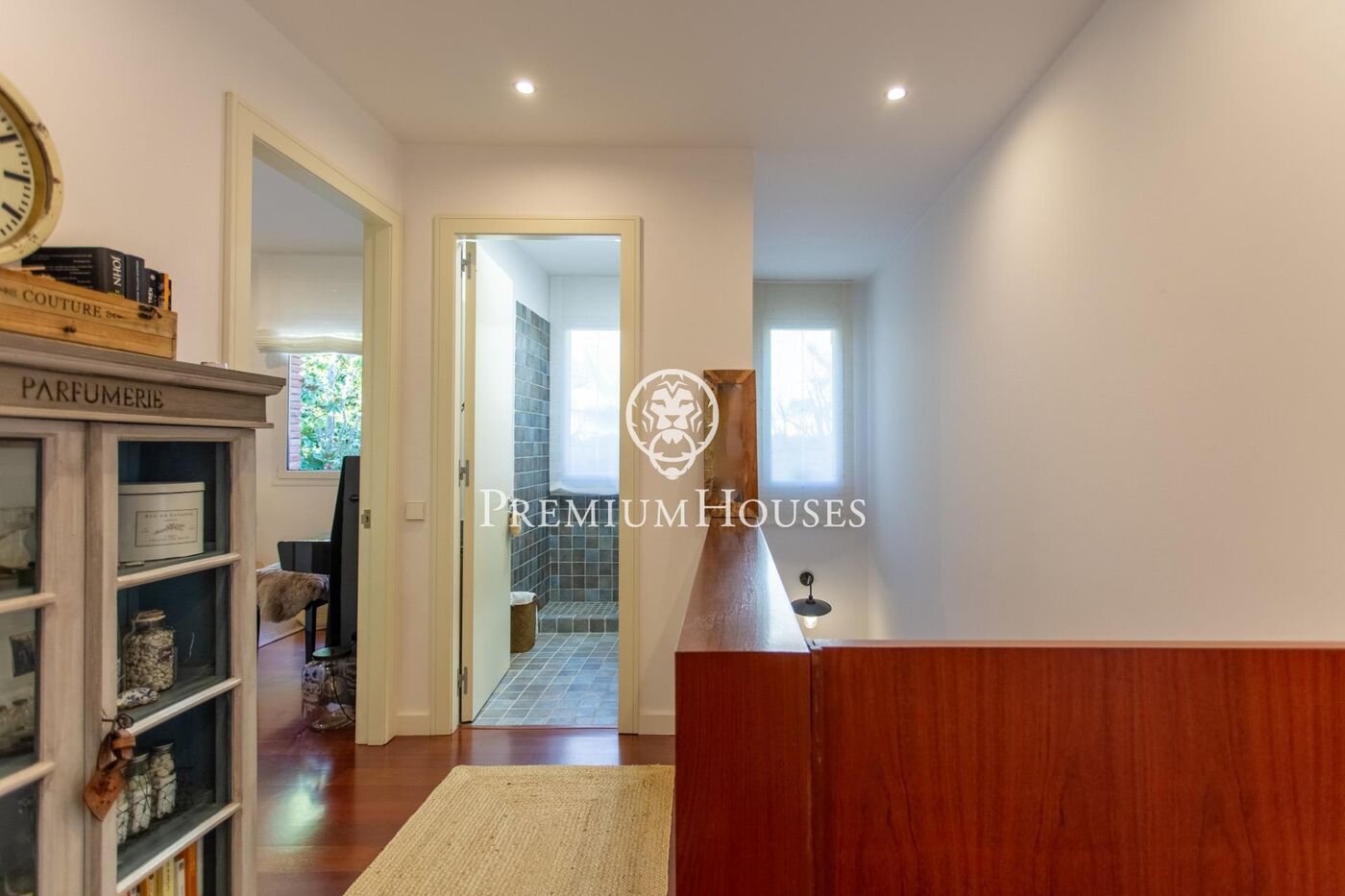 La casa ofereix un ampli i lluminós saló-menjador amb llar de foc i accés directe al jardí i a la piscina, una cuina espaiosa, quatre dormitoris —un d'ells amb bany privat—, tots amb armaris encastats, i tres banys complets.