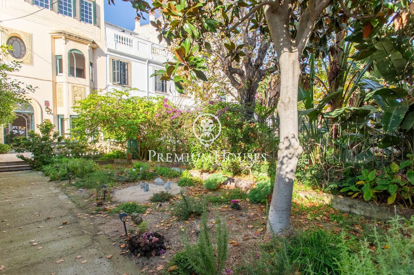 L'habitatge compta amb doble accés des de dos carrers i està envoltada de jardins privats que envolten la casa i en realcen el caràcter senyorial i atemporal.