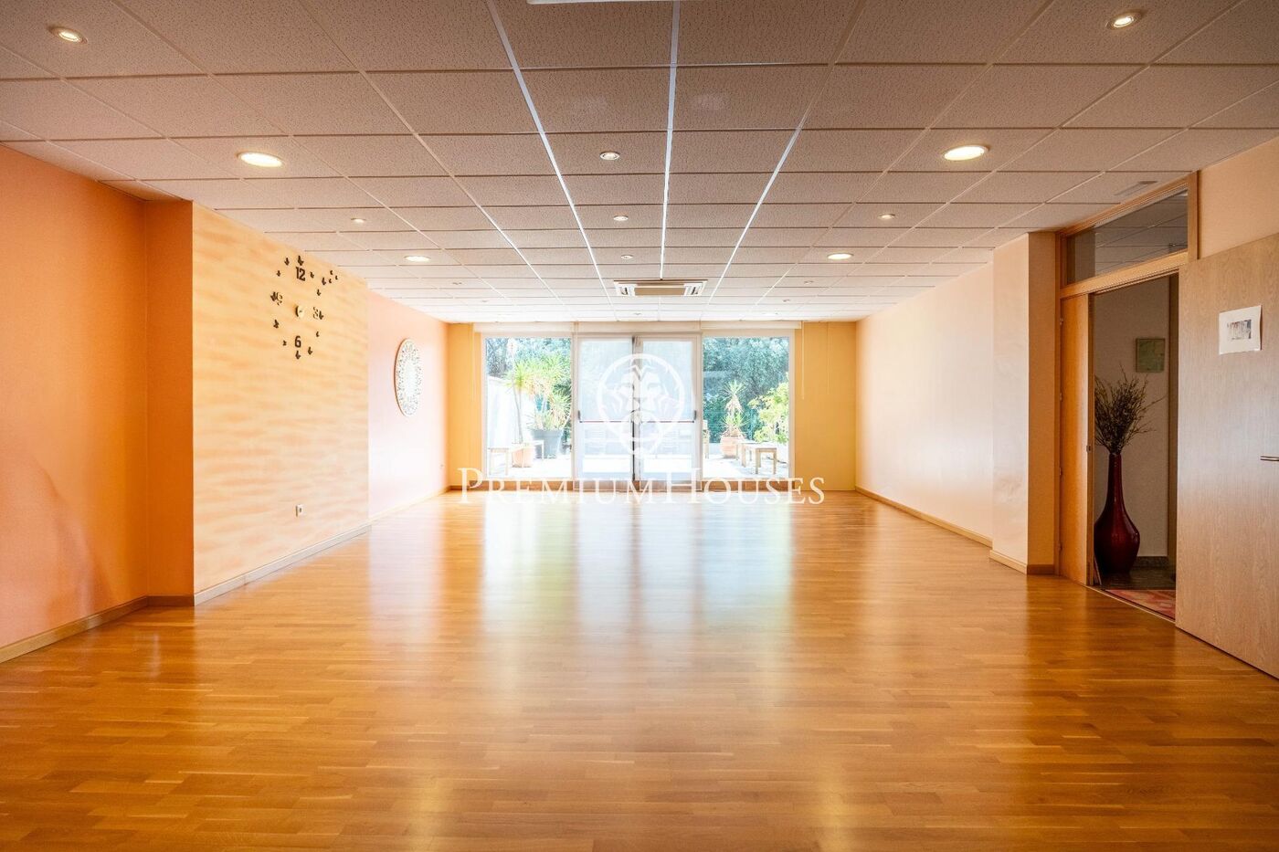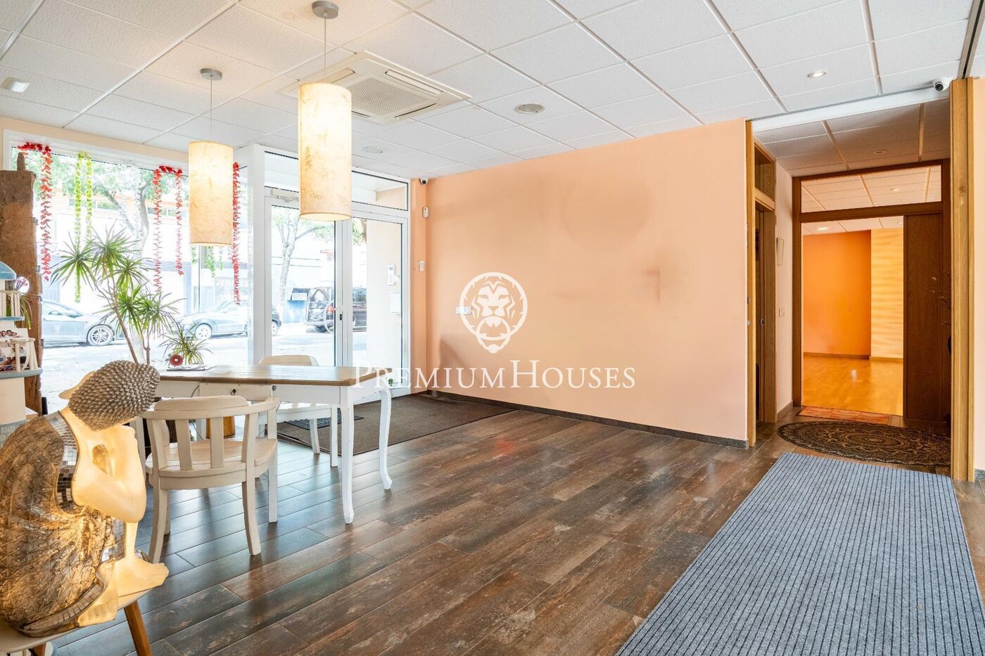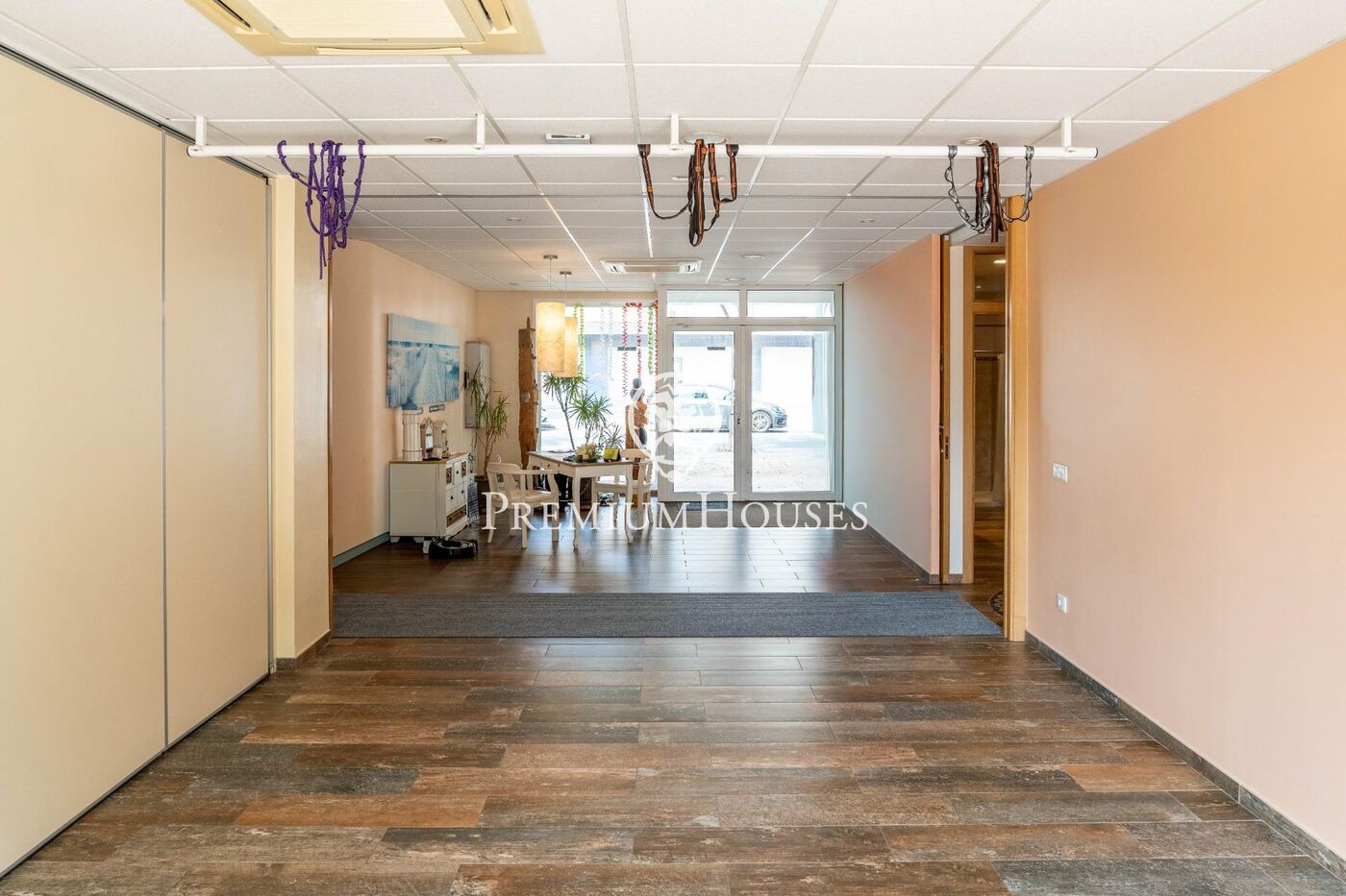 El local tiene un hall de recepción, seguido de dos amplias salas con suelo de parquet. También tiene cinco despachos independientes, dos vestuarios con ducha y baño, además de un tercer lavabo.