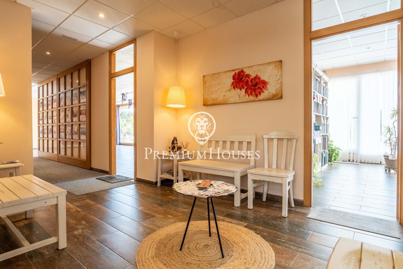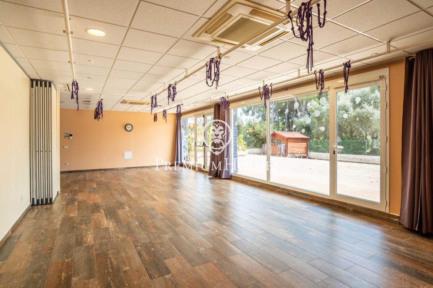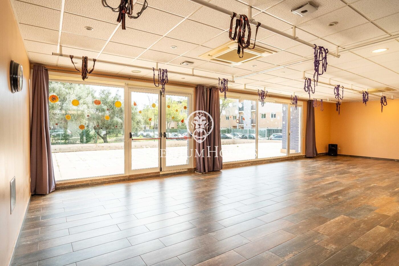 El local tiene un hall de recepción, seguido de dos amplias salas con suelo de parquet. También tiene cinco despachos independientes, dos vestuarios con ducha y baño, además de un tercer lavabo.