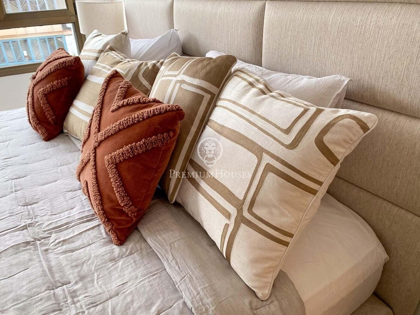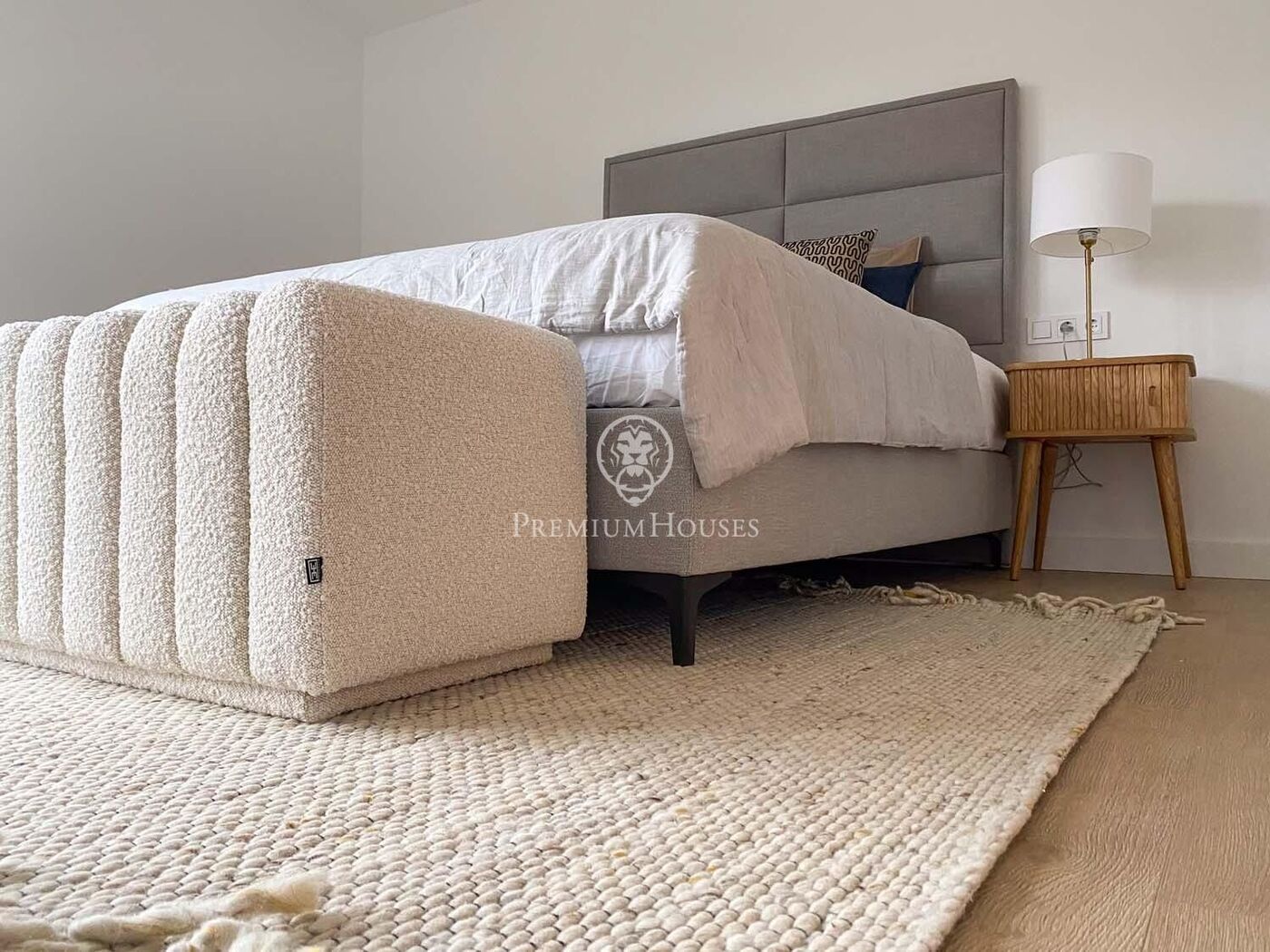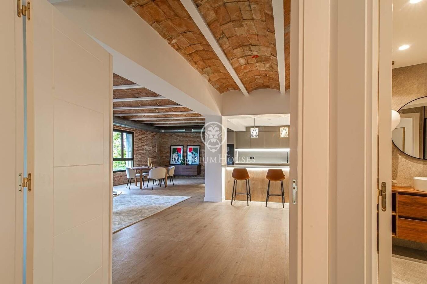 The day area features a spacious living-dining room with traditional Catalan vaulted ceilings and a fully fitted kitchen with a central island and integrated appliances. The kitchen connects seamlessly with the living space, creating a sense of openness and comfort. Additionally, the flat includes a generous entrance hall and a separate, practical laundry area.