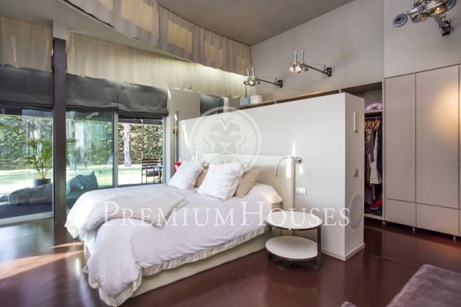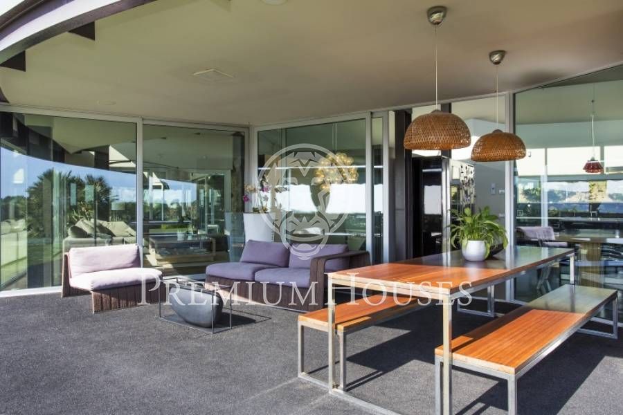 Entering the house we find a large living room with large glass doors that give access to the garden and water area, a large designer kitchen with sliding doors to communicate with the garden and barbecue area, plus a room service . As for the rooms we find a large suite with dressing room and washbasin with direct access to the water area composed by heated pool, sauna, jacuzzi and whirlpool. All this area can be used both in summer and winter as the glass is automatically sliding. On the same floor there is a games room or office, two bedrooms and a toilet. On the upper floor we find a large glazed room with jacuzzi and bathroom.It has a garage with capacity for more than 10 cars, a room with bathroom and kitchen for the staff, a warehouse, engine room and a large freezer. The heating is radiant and has solar panels.