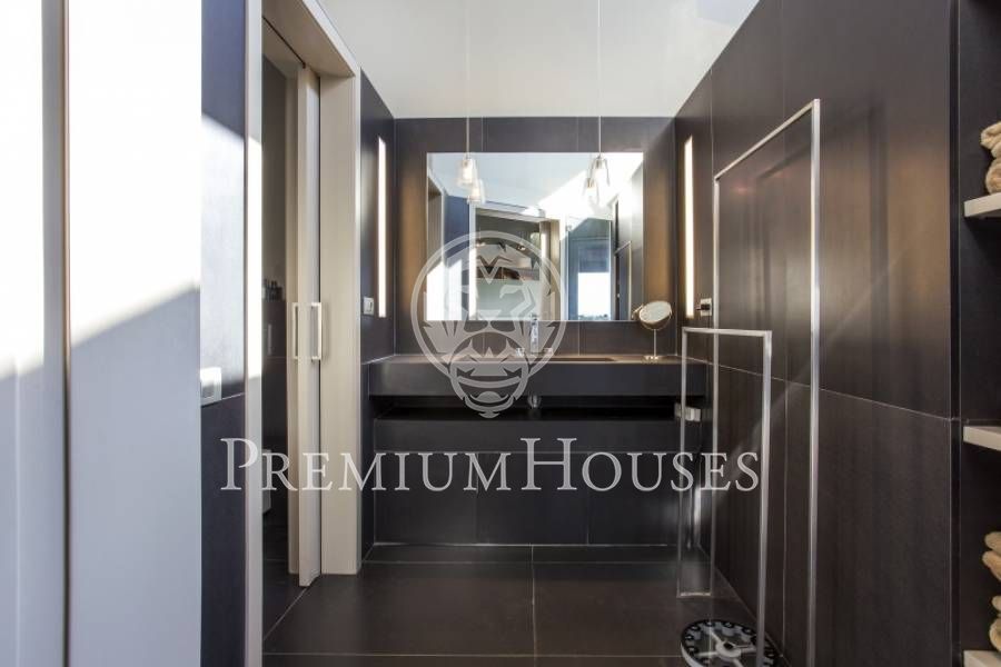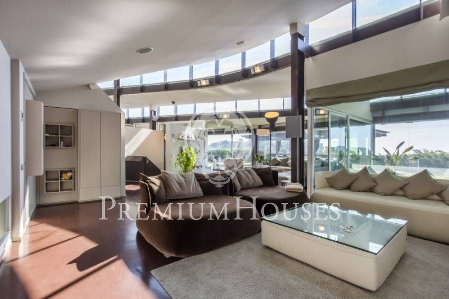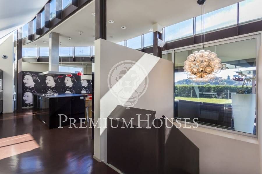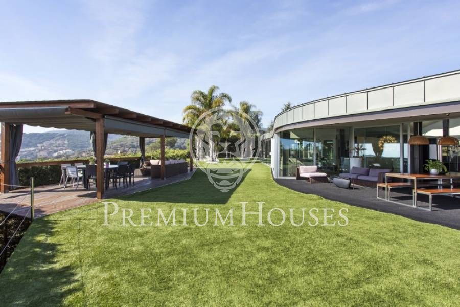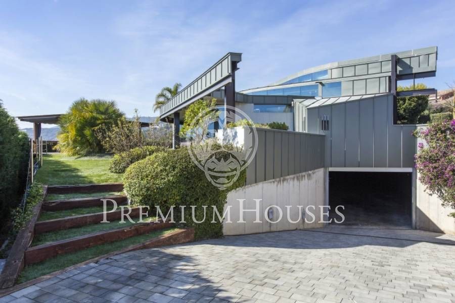 Spectacular designer house in the center of Sant Andreu de Llavaneres with beautiful sea views.Constructed in Zinc, it emphasizes its color and its shape, without any right angle and with large glass spaces that allow sunlight to enter all day.
