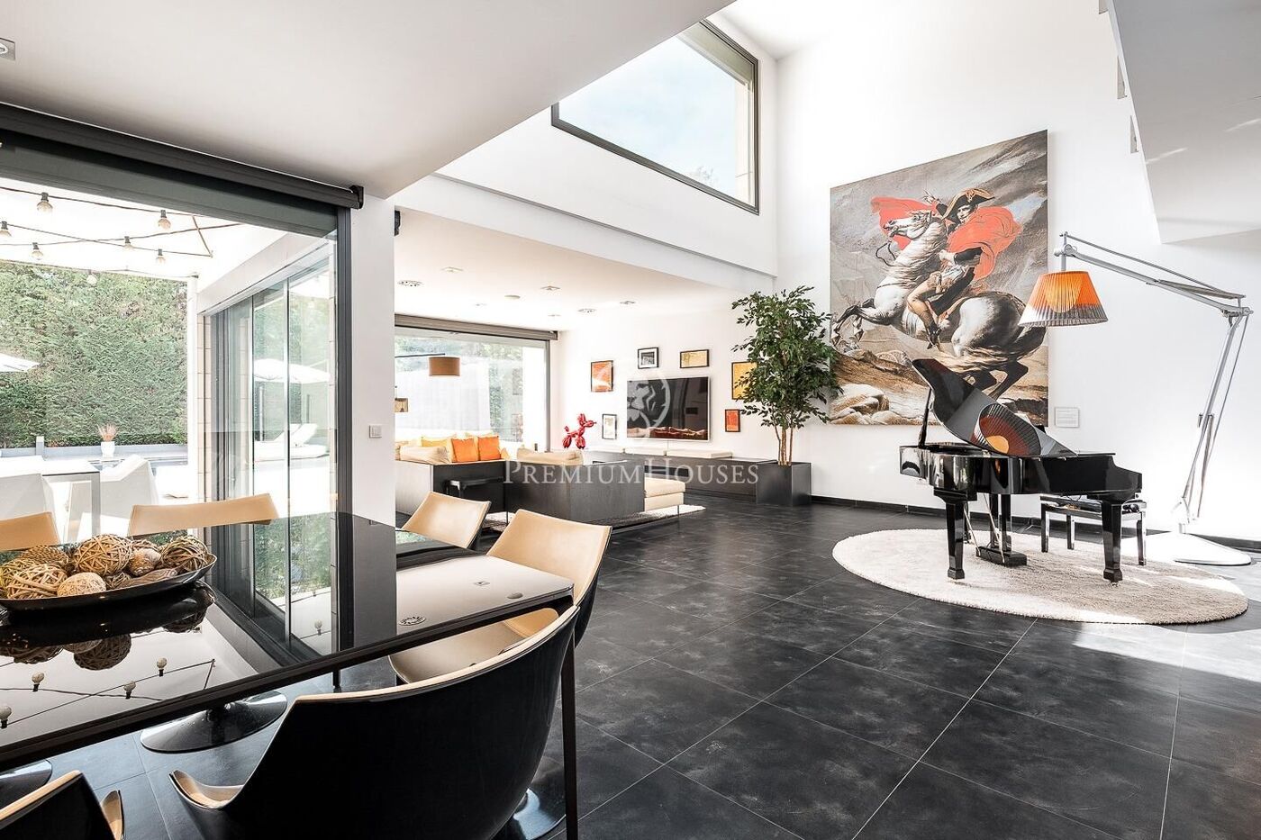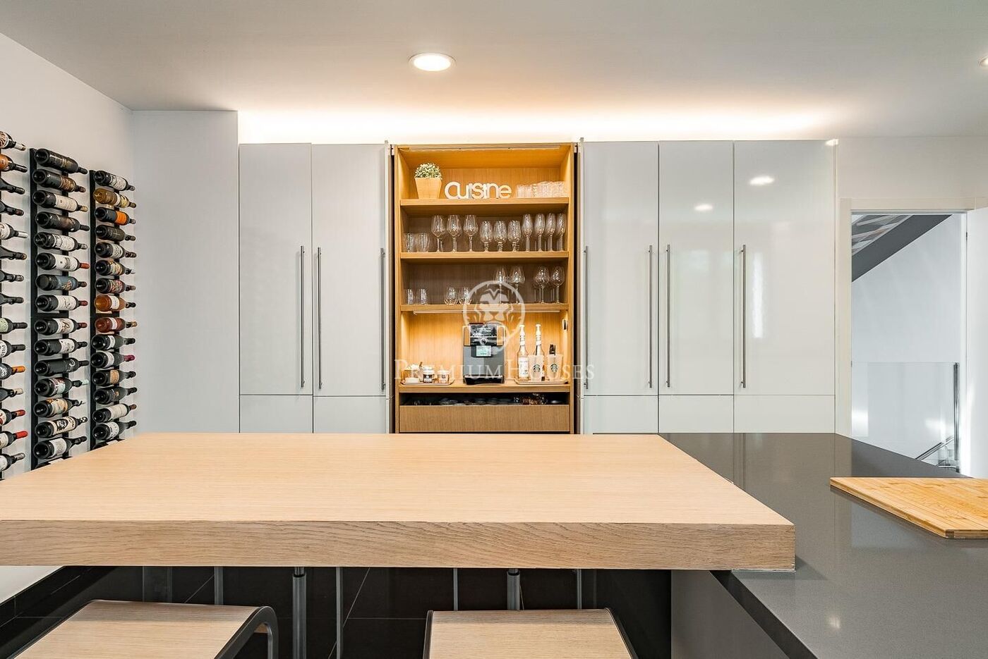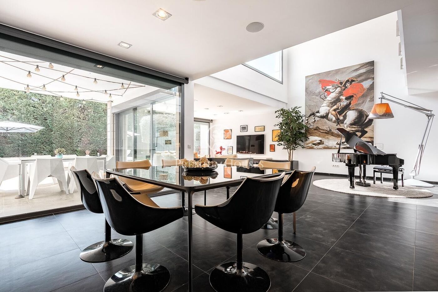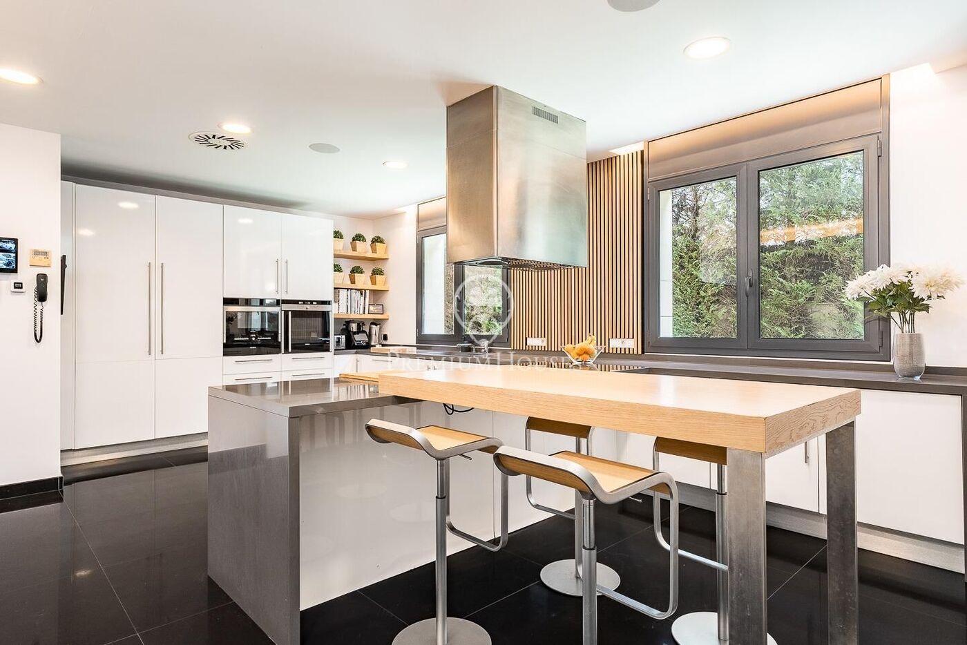 This stunning contemporary-style residence is located in one of the most peaceful and verdant areas of Valldoreix, offering a lifestyle defined by design and privacy. Spanning over 600 sqm, the property unfolds across four levels connected by a convenient elevator, harmoniously integrating with a landscaped plot designed for relaxation. On the main floor, the spectacular double-height living and dining room captivates with its brightness, thanks to large floor-to-ceiling windows that lead directly to the porch and pool area. A minimalist fireplace anchors the room, adding warmth to an open-plan space that flows into a high-end modern kitchen, featuring a central island and a daily breakfast area. This level is completed by an office—perfect for remote work—and a guest powder room.