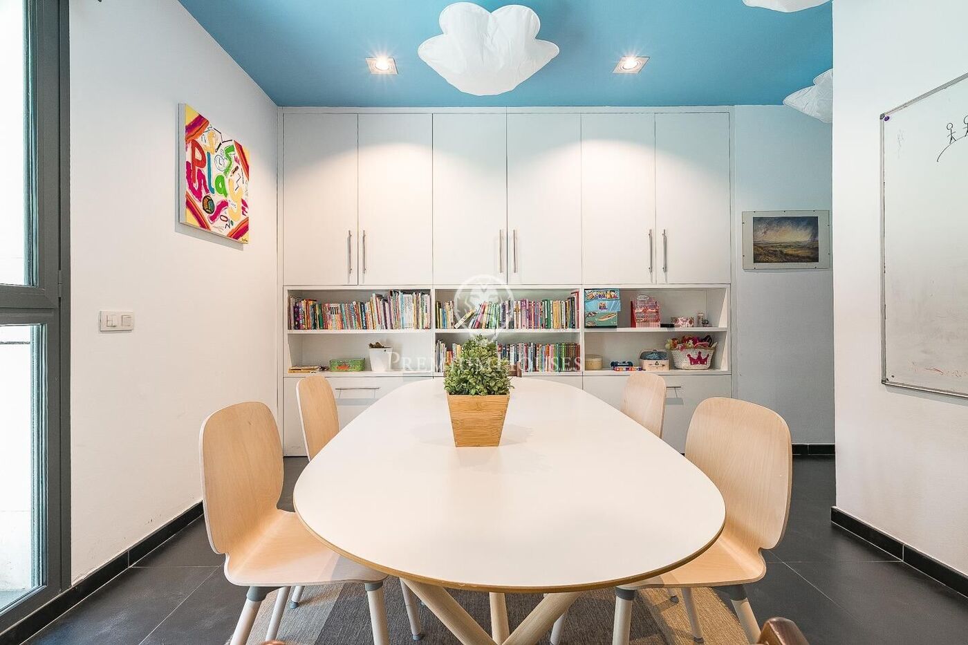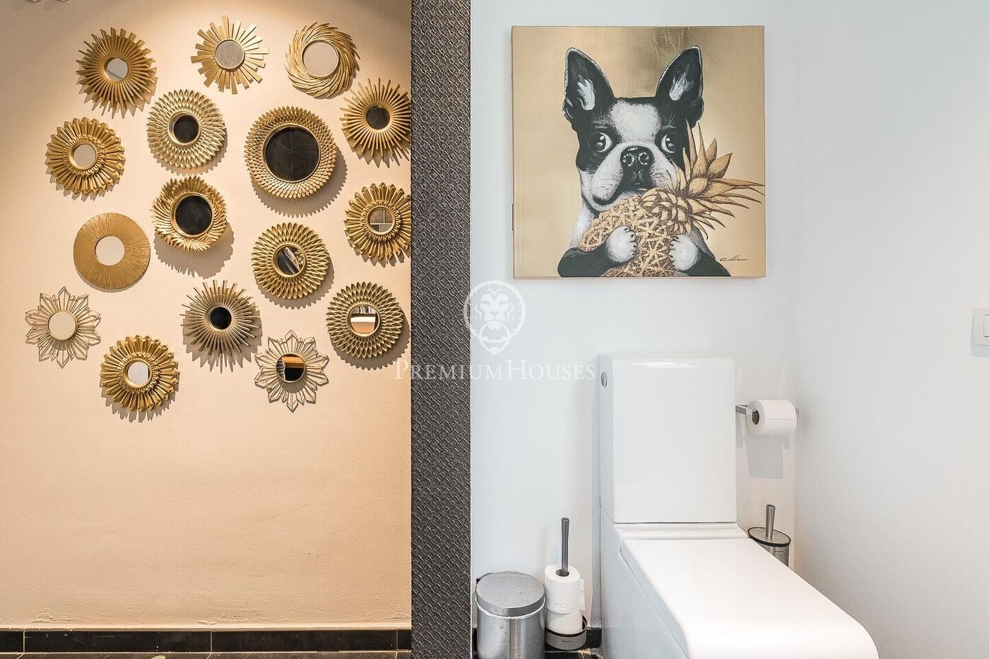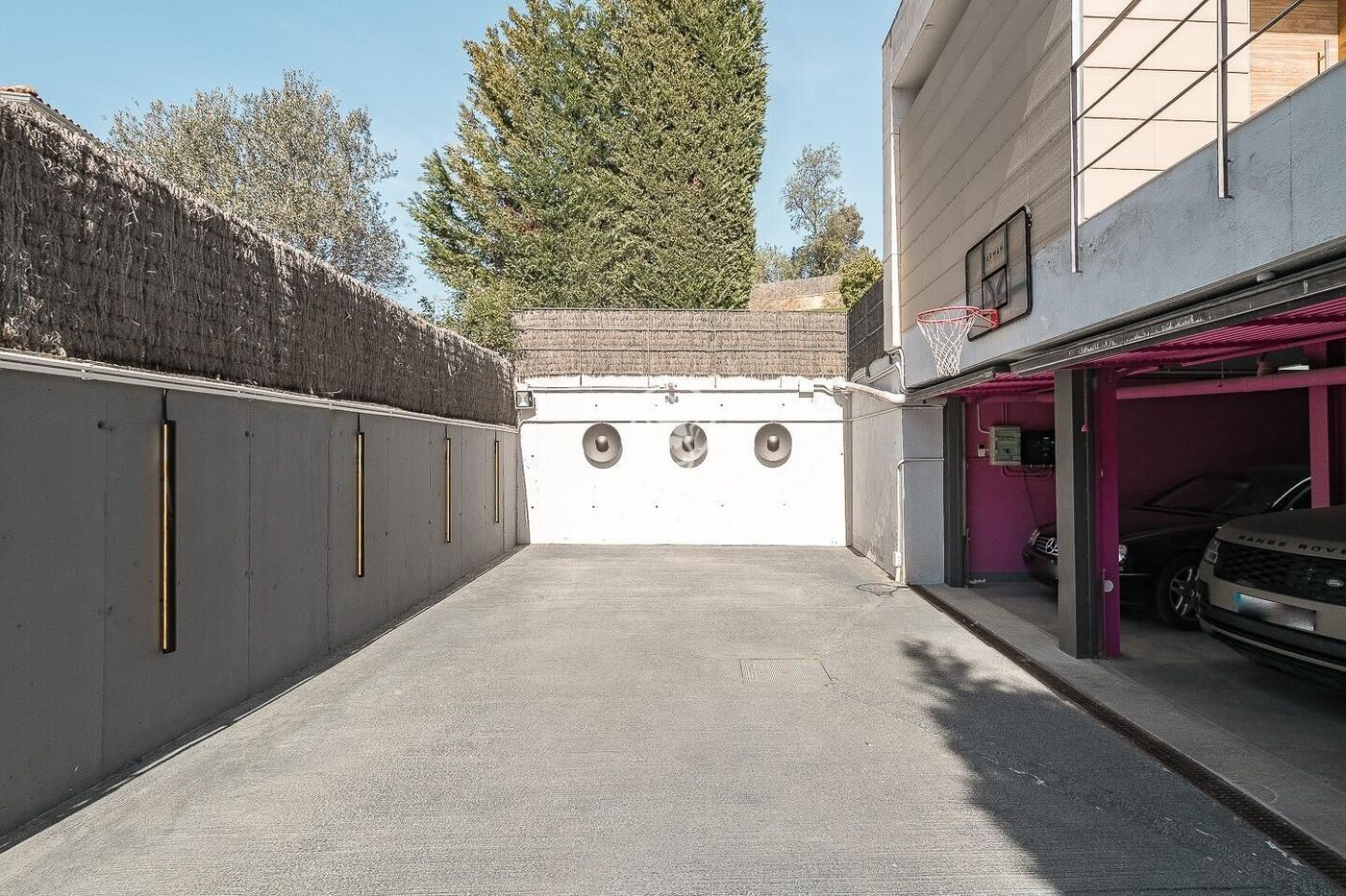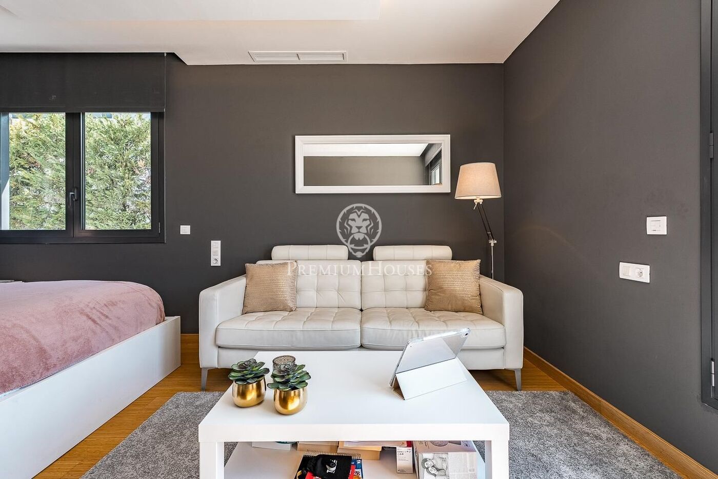 The outdoor space has been meticulously designed, highlighted by a dark-tiled pool that adds a sophisticated touch, surrounded by artificial grass, sunbathing areas, and various chill-out spots to enjoy the Mediterranean climate. Regarding technical features, the house includes parking for four vehicles, a gym or multipurpose room, a laundry room, and an advanced security system. The property also boasts underfloor heating, ducted air conditioning, and LED lighting.