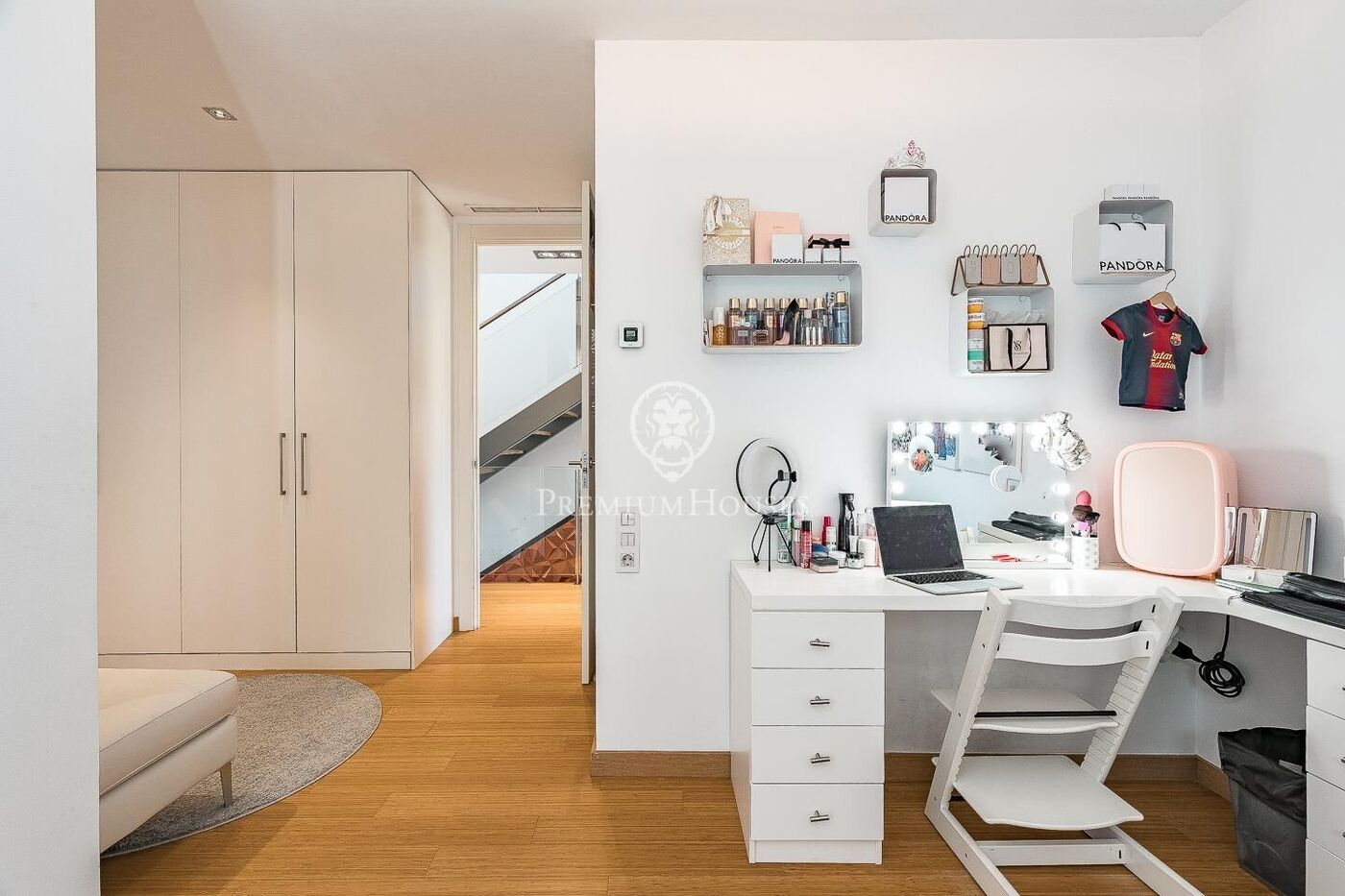 The sleeping quarters are organized on the upper floors to ensure maximum tranquility. The first level houses three double en-suite bedrooms, all with high-quality full bathrooms and built-in wardrobes. Meanwhile, the top floor is entirely dedicated to the master suite: an authentic luxury sanctuary featuring a walk-in closet, a private lounge, a bathroom with a designer freestanding tub, and access to a private sun terrace with privileged views.