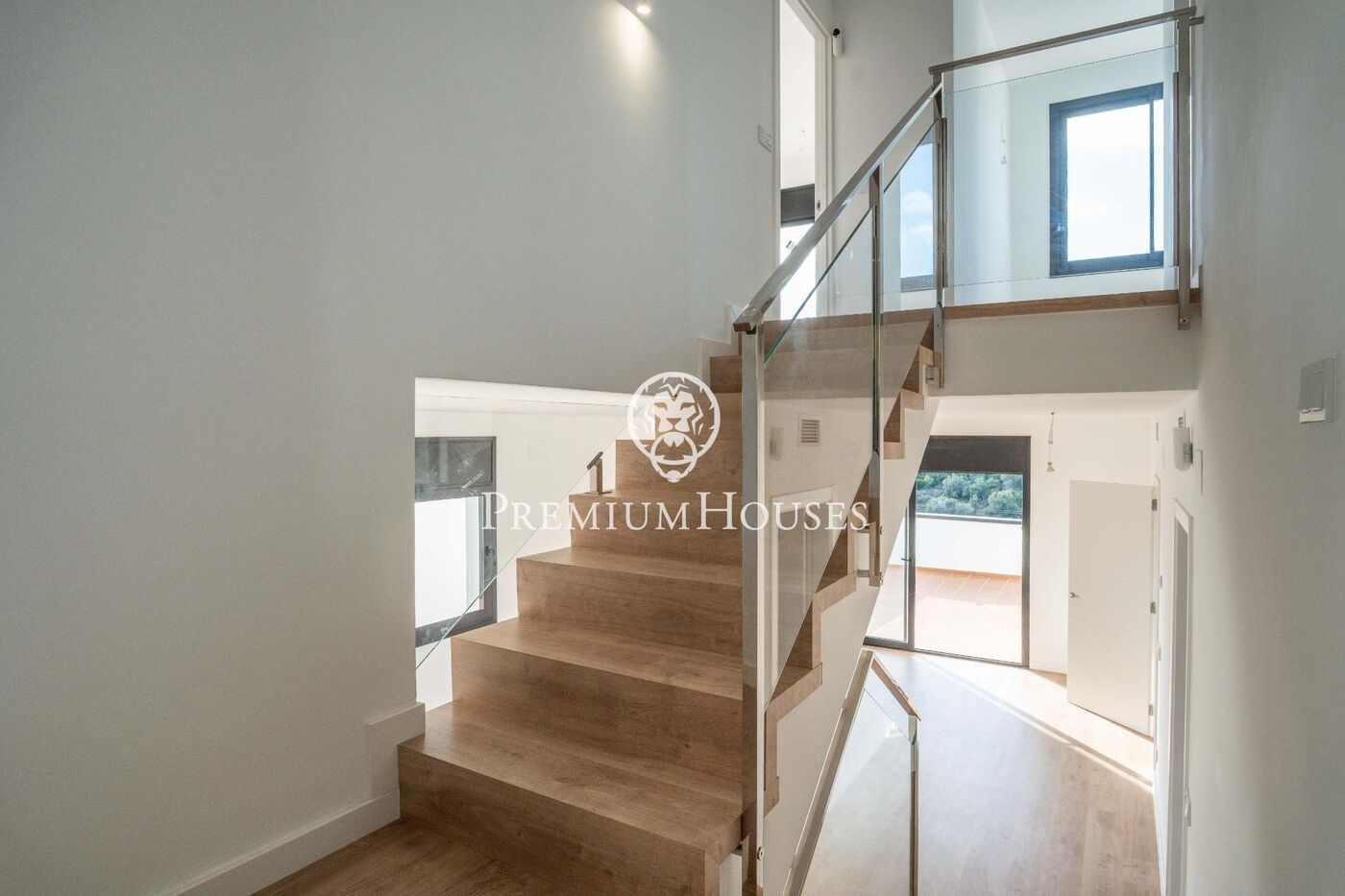 The top floor features two additional bedrooms: an en-suite bedroom and a double bedroom, both with access to a terrace offering panoramic views.