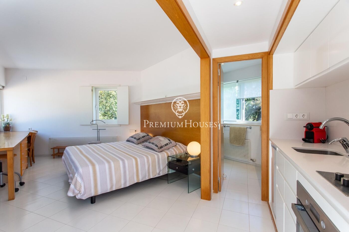 L'intérieur se distingue par son atmosphère calme et sophistiquée, avec des pièces spacieuses et bien conçues qui allient confort et fonctionnalité. L'agencement a été pensé pour maximiser l'apport de lumière naturelle tout au long de l'année et garantir l'intimité de chaque espace.