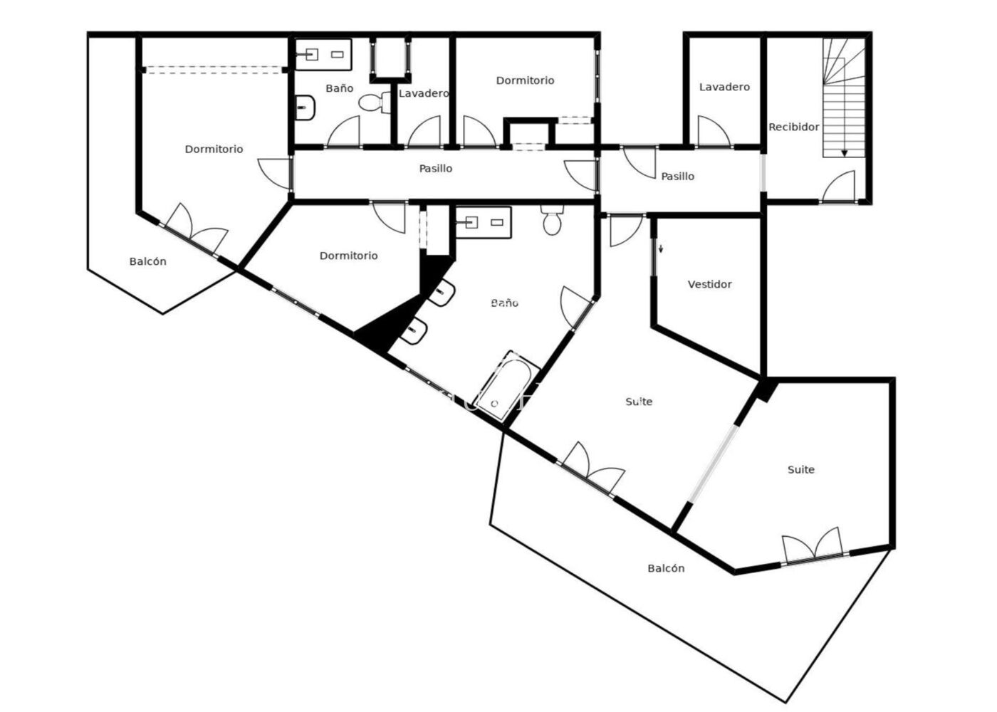 A l'étage inférieur, nous avons la zone nuit. Le long d'un couloir qui divise les différents espaces, nous trouvons 3 chambres doubles extérieures avec accès à une terrasse et une chambre simple intérieure. La chambre principale est en suite et dispose d'un dressing et d'une grande taille. Il y a une autre salle de bain complète qui dessert le reste des chambres. Ils ont tous des armoires encastrées.