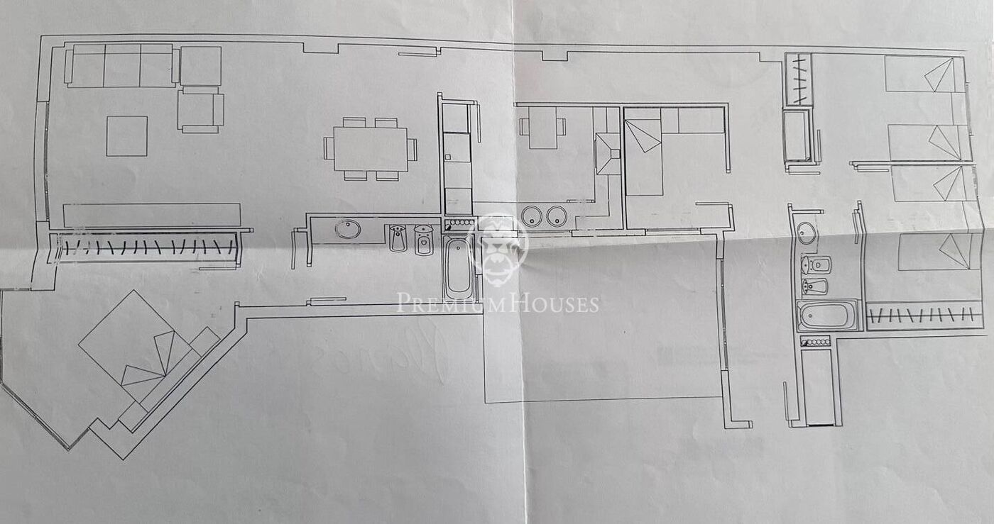 Premium Houses is proud to present this wonderful 124 m² property located on the second real floor, situated on Carrer Tamarit with a south-facing orientation and privileged views of the iconic Sant Antoni Market, ensuring natural light throughout the day.