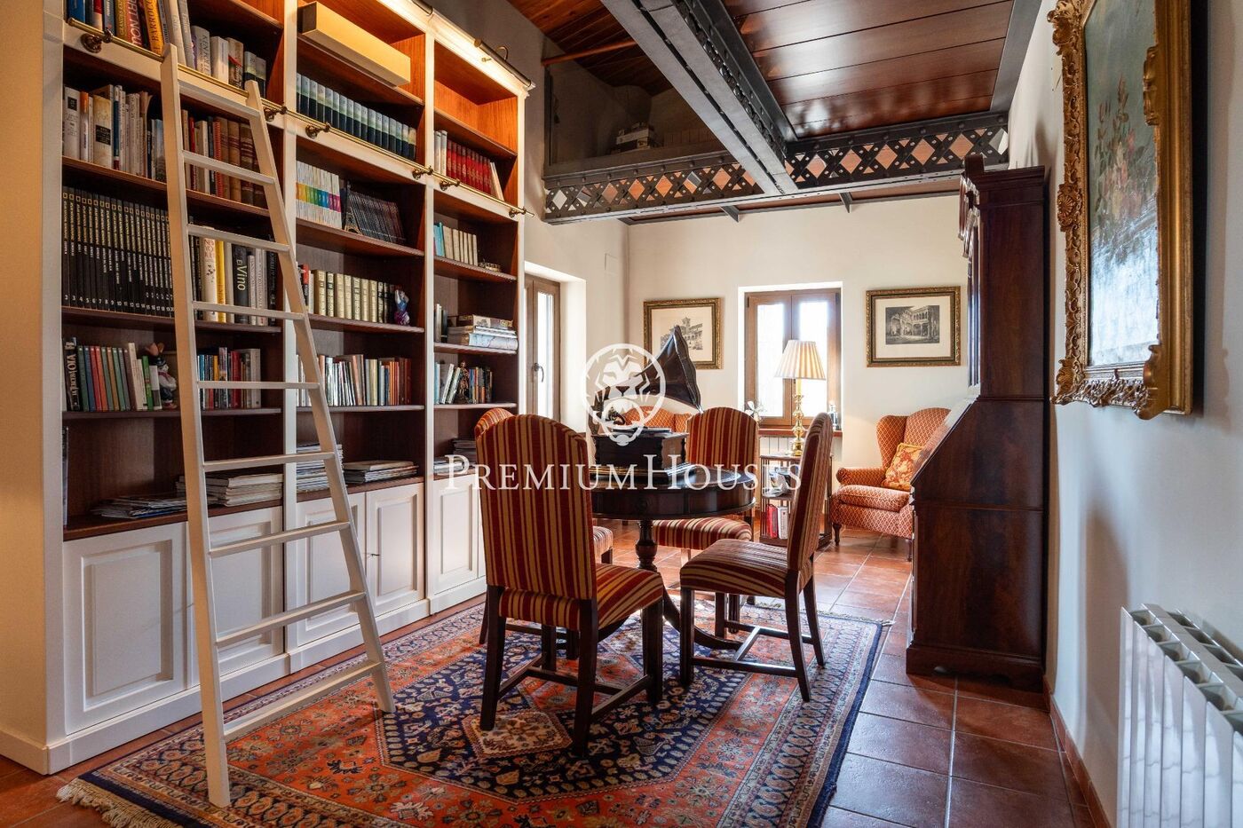 На первом этаже расположены библиотека и три спальни с двуспальными кроватями, одна из которых с ванной комнатой, балконом и частной террасой, а также вторая полностью оборудованная ванная комната.