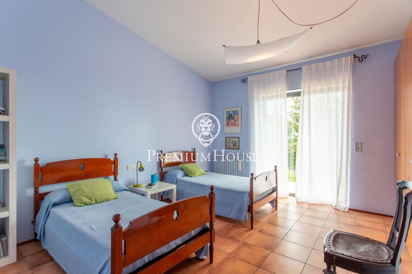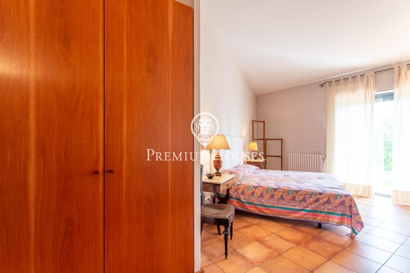 The open-plan kitchen, spacious and bright, has large windows that offer views of the garden and the swimming pool. Next to it, a practical office-laundry area provides functionality without sacrificing style. All the main rooms have direct access to the garden, perfectly integrating the interior with the natural environment that surrounds the property.