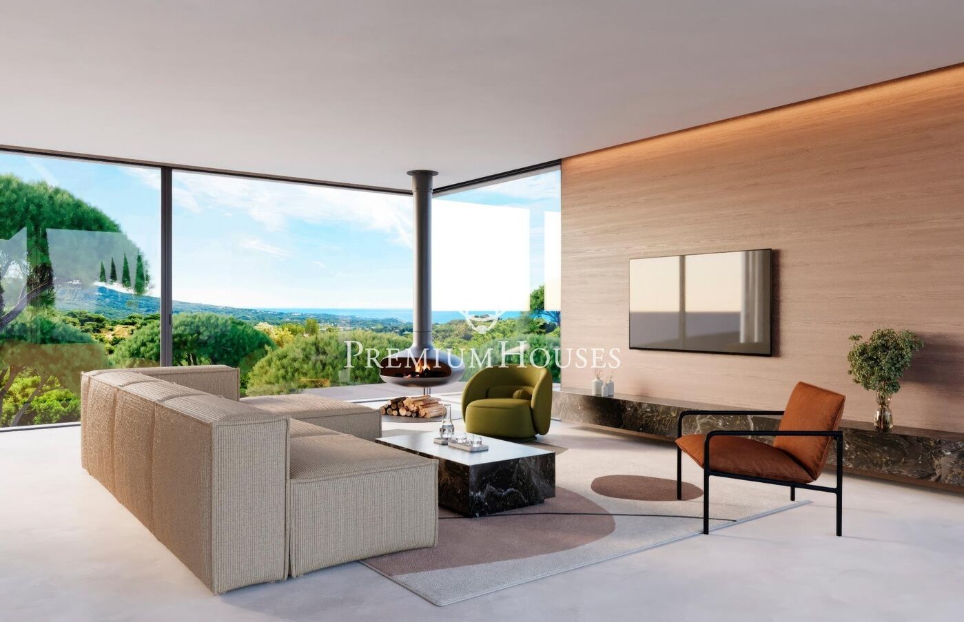 The modern architectural design is completed with a flat roof finished in gravel, integrating elegantly into the surroundings, metallic carpentry with thermal bridge, double glazing, electric blinds, top of the range Siemens/Miele electrical appliances, Roca bathroom fittings, lacquered wood interior carpentry, porcelain stoneware flooring and air conditioning. Garage with capacity for two cars.