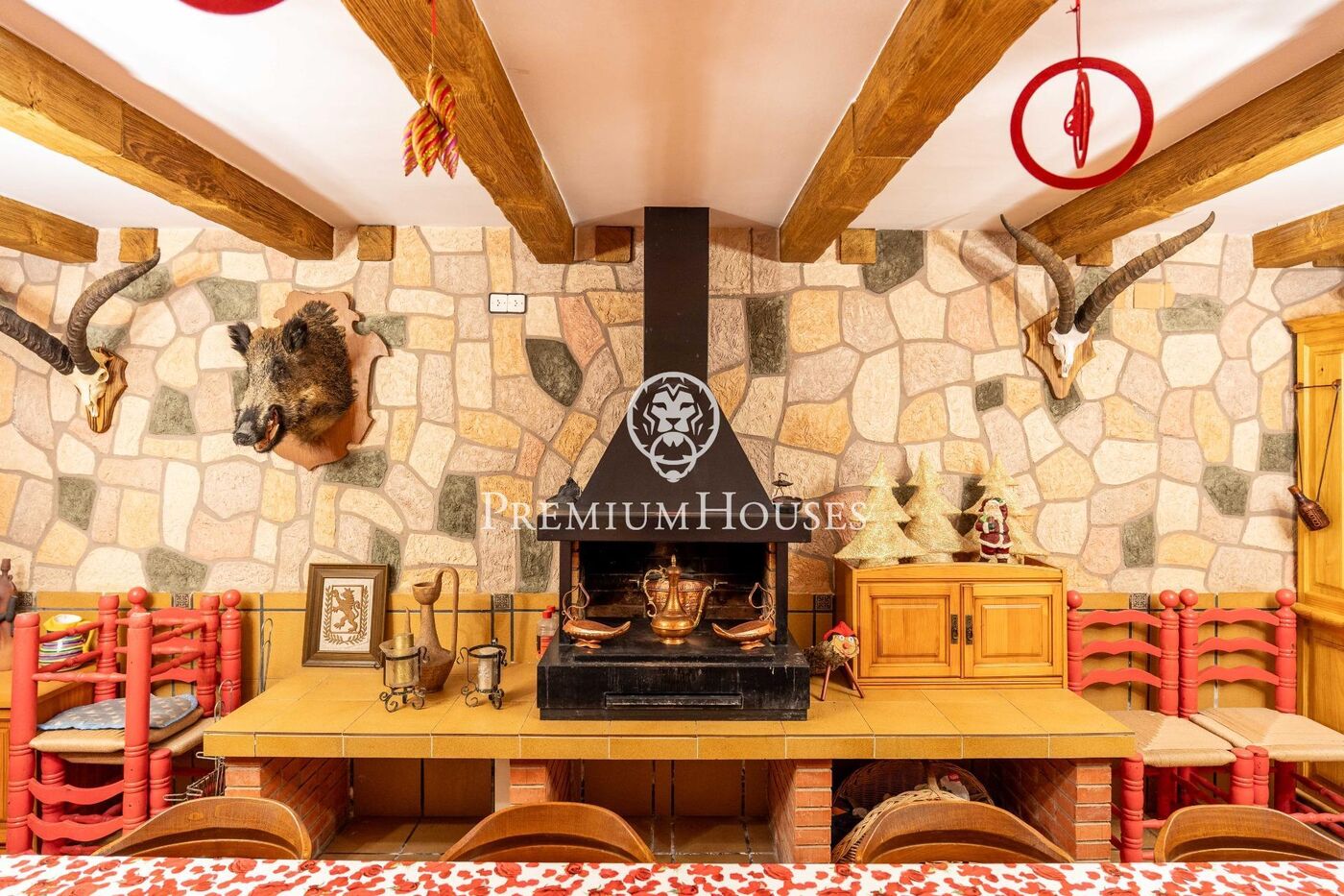 El sótano dispone de un comedor adicional con chimenea, un espacio para almacenaje y garaje para un coche.