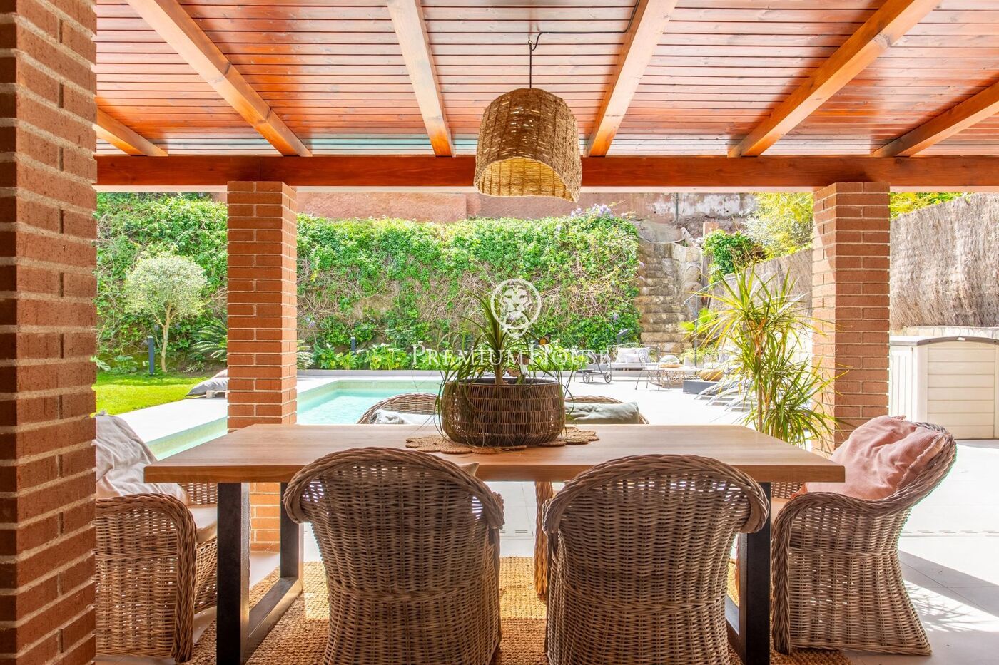 La casa dispone de garaje para 3 coches y espacios añadidos para moto y bicicletas. La piscina es salina y dispone de una zona de barbacoa donde podemos disfrutar de comidas y cenas a la fresca en el comedor de verano.