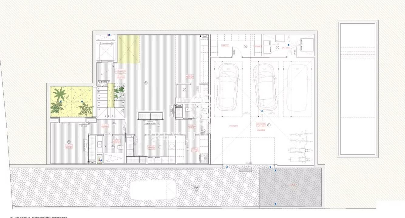En la planta sótano, tenemos un estudio, un garaje con capacidad para tres coches, motos y bicicletas y un lavadero.