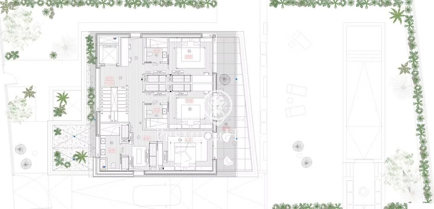 En la primera planta, zona de noche, se compone de cuatro habitaciones dobles, todas en suite. Todos los dormitorios tiene acceso a una terraza.