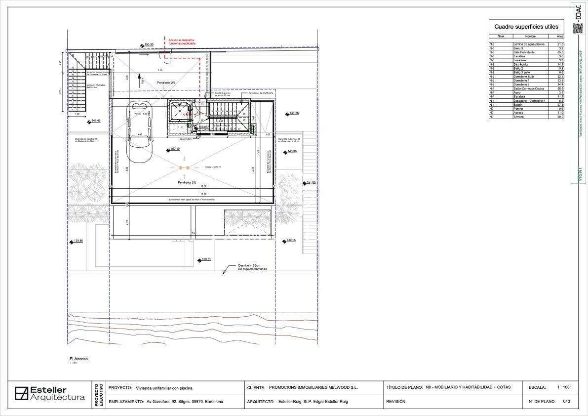 En Quintmar, Sitges encontramos esta proyecto de vivienda moderna con vistas despejadas. La propiedad contará con jardín y piscina. Al disfrutar de espacios diáfanos y de orientación sur la vivienda recibirá mucha luz natural a lo largo de todo el día.