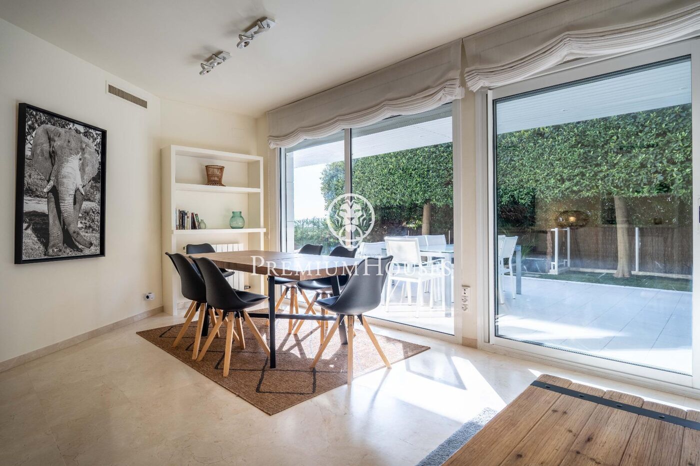 Desde la entrada de la vivienda, a la derecha del recibidor, encontramos un amplio salón comedor con salida directa al jardín privado de grandes dimensiones, con vistas al mar, zona de barbacoa y un gran porche con zona de sofas y comedor de verano.También se encuentra la espaciosa cocina totalmente reformada y equipada, con lavadero independiente.
