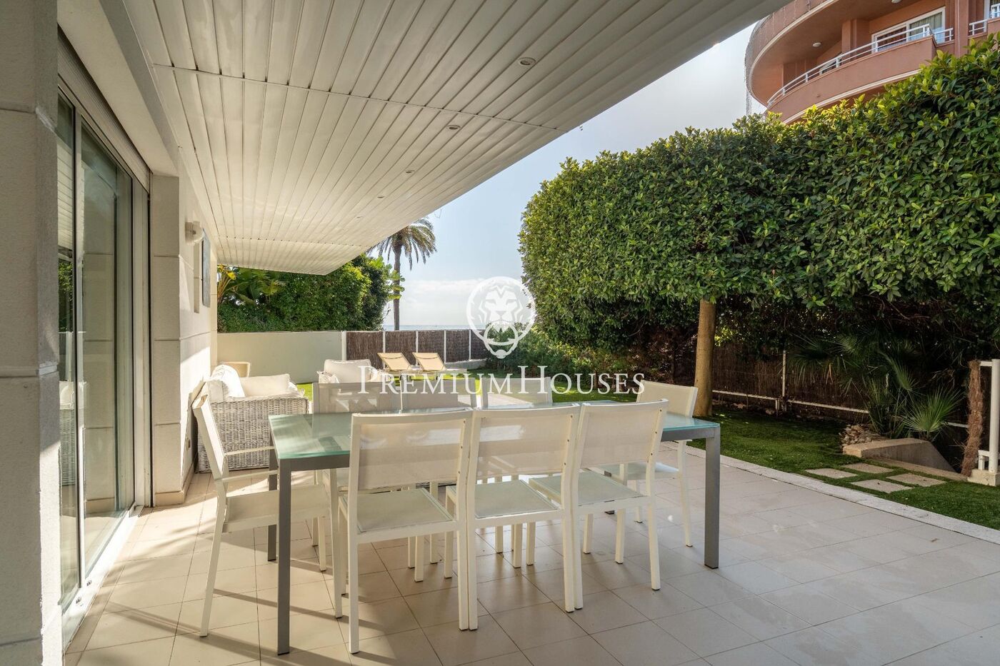 Planta baja con vistas al mar en el complejo residencial de Parc de Mar, al lado del Golf Terramar y en primera línea de mar. Su esplendido jardín privado de 209 m2, la salida directa desde el mismo al Paseo Marítimo y a la zona ajardinada de la urbanización, hacen de este piso una pieza singular y única.