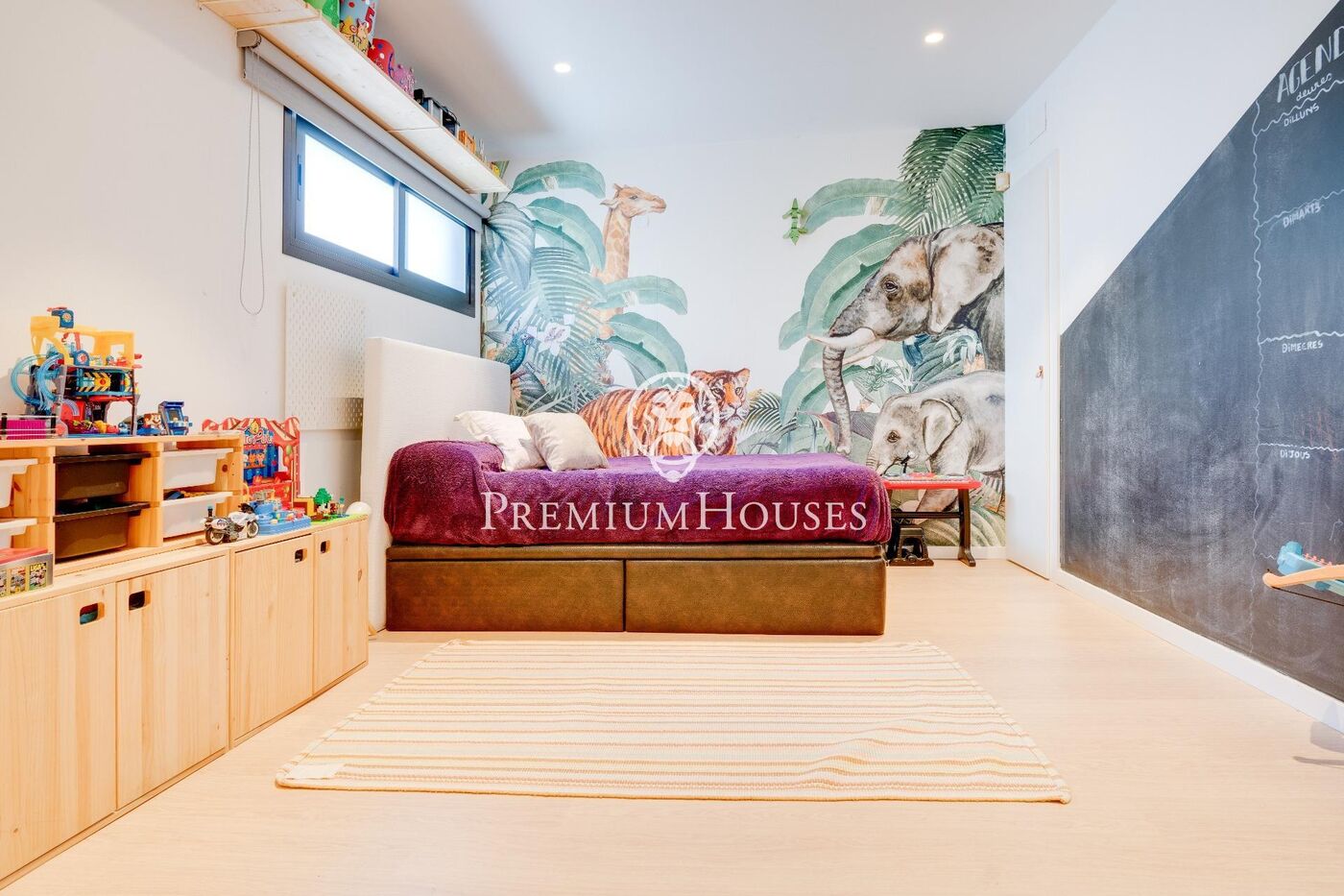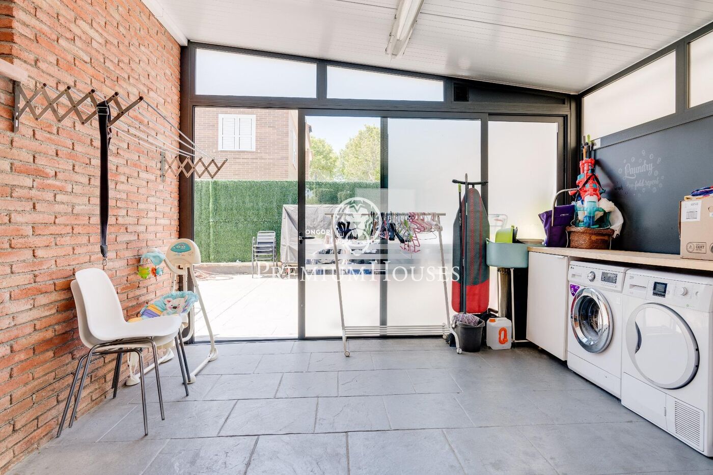 La propiedad se distribuye en dos plantas. Entramos en un amplio hall que da acceso a un gran salón-comedor luminoso. Desde este espacio accedemos a una gran cocina con isla central con comedor. Desde ambos espacios accedemos al jardín que cuenta con una piscina y un espacio de comedor. Una habitación de juegos y un baño completan esta planta.