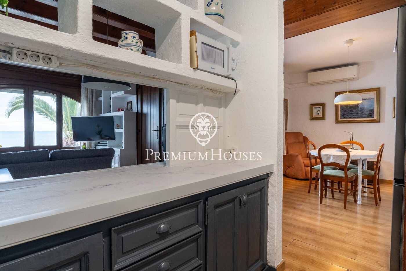 La propiedad se distribuye en un luminoso salón-comedor y una cocina americana con vistas al mar. Seguidamente, encontramos tres habitaciones. Dos son dobles y una simple. Un baño completo da servicio a todo el piso.